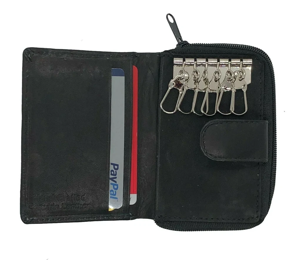 HomeLlavero estuche cuero de vaca genuino para hombre llavero acordeón moneda identificación crédito aprox.