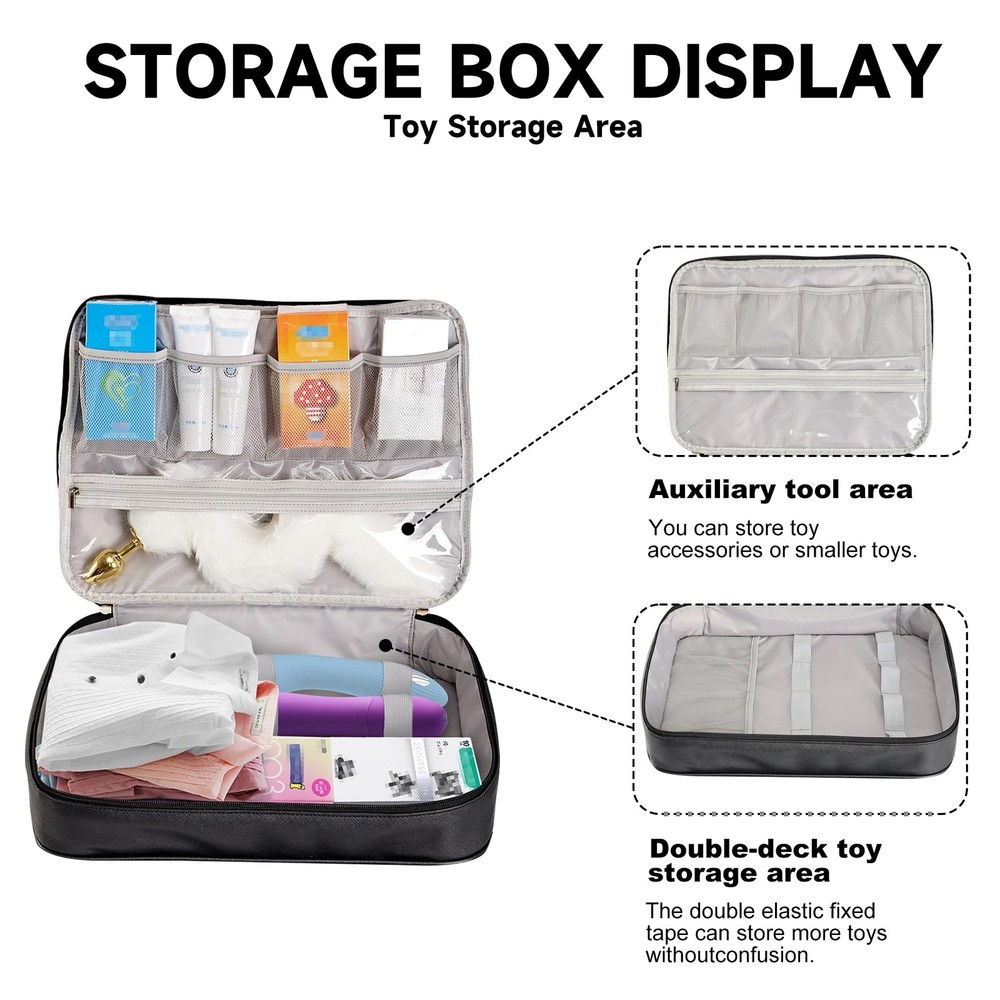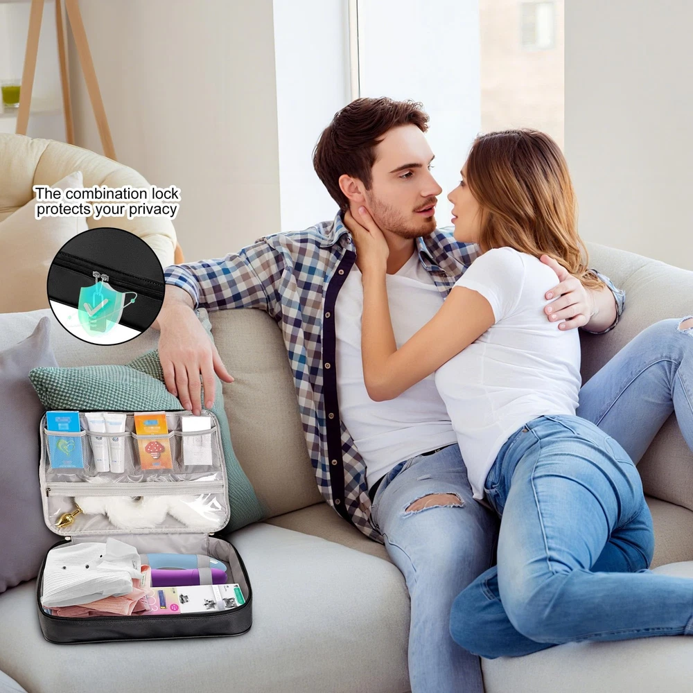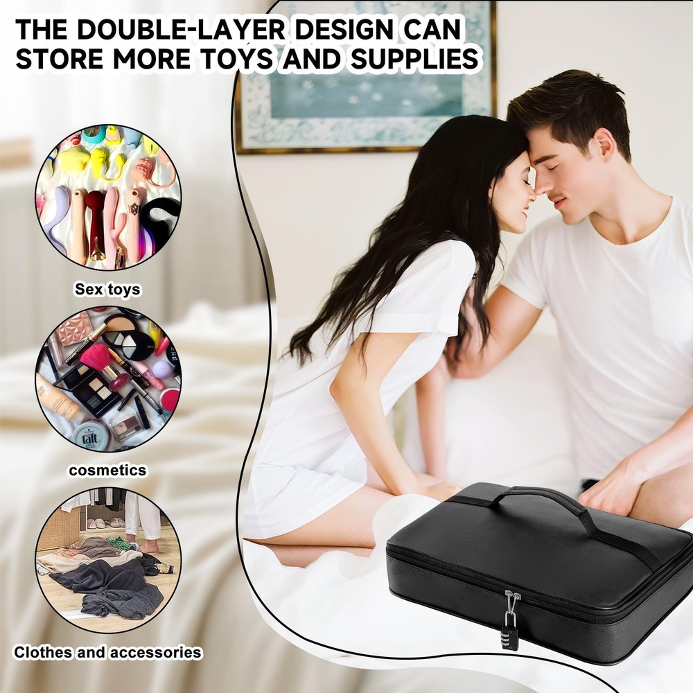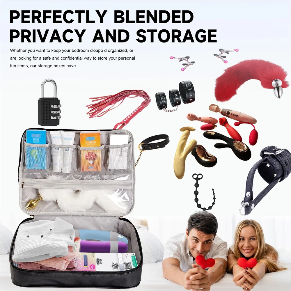 Discreet, Practical, and Designed for Privacy. This lockable storage case is the perfect solution for organizing and protecting your most personal belongings. Whether you're at home or on the go, it helps keep everything private, secure, and neatly arranged. Secure Closure: Comes with a bonus 3-digit combination padlock to keep items safe and away from curious eyes. Waterproof PU Leather: Stylish and durable exterior resists water, dust, and stains—easy to clean and built to last. Spacious Interior: Measures 10.6" x 7.6" x 6.3", with elastic straps and mesh compartments to various personal and essentials. Travel-Friendly: Compact and discreet design fits into drawers, suitcases, or closets without drawing attention. Bonus Drawstring Pouches: Includes soft microfiber bags (13.8" x 7.9" and 11" x 7.1") to keep smaller items separated and organized. This case is ideal for storing intimate care items, personal , or other sensitive essentials—offering both peace of mind and everyday convenience. 【 Lockable Storage for Adult Use】 This lockable storage is ideal for adult storage, ensuring privacy and for your most personal items. A locking storage with a durable combination lock keeps everything discreet and safe in your bedroom or while traveling. 【Large Capacity Storage 】 Designed as a big with internal organization, this measures 12.6 x 8.2 x 4 inches, offering ample space for storing adults toys, , and even other valuables. A great storage for home or travel use. 【Waterproof, Durable & Stylish Material】 Made of premium PU leather, this case not only protects your items from moisture and dust but also maintains a sleek, discreet appearance. Perfect for sensitive items and bedroom toys. 【Multipurpose & Travel-Friendly Adult Bag】 More than just a storage solution — it also works as a lockable storage bin for makeup, medicine, or personal care items. The discreet bag for toys and 2 drawstring pouches make it travel-ready and versatile. 【Discreet Design with Maximum Privacy】 This adult blends in with your home or luggage thanks to its minimalist look. Whether you need a for personal use or a secure adult bag for trips, this case is built to offer both functionality and peace of mind. 【What’s in the Package】 Each package includes 1 lockable storage , 1 built-in combination lock, and 2 drawstring storage pouches. This discreet bag for toys serves as a reliable adult , storage , or locking storage bin. Whether used for organizing bedroom toys, small , or adults toys, it offers a blend of privacy, convenience, and portability—well-suited for home, travel, or dorm storage.