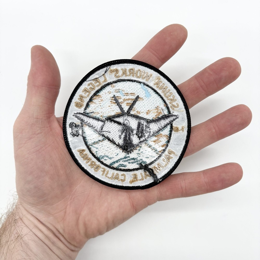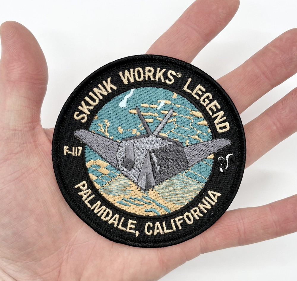 Lockheed Martin® Skunk Works® F-117 Nighthawk® Patch, Palmdale, CA - 3.5" Circular Embroidered Iron-On or Sew-On Emblem, Stealth Fighter Heritage Insignia Product Specifications: Program: Lockheed Martin® Skunk Works® (ADP) Aircraft: F-117A Nighthawk® Location: Palmdale, CA (Plant 42) Dimensions: 3.5-inch Diameter Backing: Iron-On / Sew-On (Heat-Seal) Skunk Works® associated emblems and logos, and body designs of vehicles are either registered trademarks or trademarks of Lockheed Martin Corporation in the USA and/or other jurisdictions, used under license by Squadron Nostalgia LLC The Lockheed Martin® Skunk Works® F-117 Nighthawk® forever changed aerial warfare as the world's first operational stealth aircraft. Developed in total secrecy by the "Advanced Development Programs" (ADP) division, the F-117 was born and bred in the high desert of Palmdale, CA . Even years after its official retirement, the "Black Jet" continues to be a symbol of American ingenuity, with airframes still appearing over Plant 42 for specialized testing. This patch honors the legendary "Stinkbug" and the Skunk Works® engineers who proved that "impossible" shapes could disappear from enemy radar. This 3.5-inch patch features a versatile iron-on backing , allowing for quick application to cotton jackets and gear, while remaining fully capable of being sewn-on for a permanent mount on flight suits or heavy canvas. "Wobblin' Goblin" to Stealth Legend: The Palmdale Legacy. The Skunk Works® F-117 Nighthawk® Palmdale Patch is a tribute to the "Bandits" who flew it and the Skunk Works® personnel who maintained the "Black Jet" at the legendary Plant 42 facility . From its combat debut in Panama to its dominant performance in Operation Desert Storm, the F-117 proved that stealth was the ultimate force multiplier. This patch captures the secretive, high-tech culture of Palmdale, where the first Senior Trend aircraft were assembled and tested. Built for Aviators, Engineers, and Stealth Enthusiasts This iron-on/sew-on edition is built for versatile customization. Whether you are an aerospace engineer, a military veteran, or a collector of "Black Project" history, this patch allows you to permanently display your connection to the Skunk Works® legacy. The 3.5-inch diameter is the ideal size for flight jackets, work shirts, or backpacks, providing a clean, professional aesthetic that stays flush with the fabric. Exceptional Craftsmanship Every stitch is executed to military-grade standards. The design captures the unique, faceted geometry of the Nighthawk® and the classic Skunk Works® branding, ensuring that the legacy of the aircraft that "never existed" remains sharp and recognizable. This patch is a durable piece of aerospace history, representing the pinnacle of American ingenuity. Lockheed F-117A in flight. (U.S. Air Force photo)