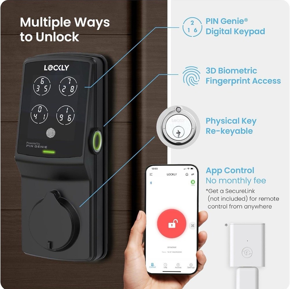 The Lockly Secure Plus Deadbolt Smart Fingerprint Lock in Matte Black is a modern and secure option for your home. This deadbolt features a keyless entry system with fingerprint recognition, providing an added level of security for your home. Made of durable aluminum and nickel materials, this universal mounting deadbolt is ANSI Grade 1 certified for peace of mind. The sleek matte finish and compact dimensions make it a stylish and practical choice for any door. Fast Shipping! Items are from a Smoke Free / Pet Free Environment Buy with Confidence ... About Us Providing Excellent Customer Service and Quality Brands for Great Prices Contact Us Please message me if you have any questions or concerns. Thanks for your business...