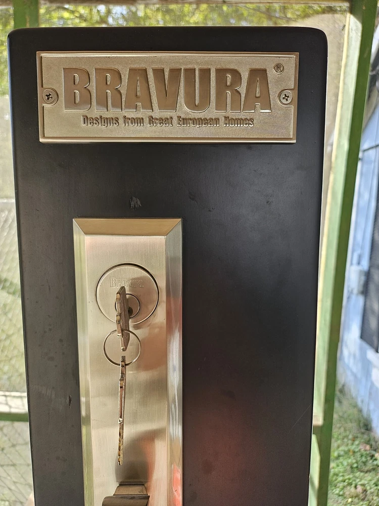 Enhance the look of your residential front entrance door with this beautiful Bravura Entrance Lockset Designs from Great European Homes Display Model. Crafted from high-quality brass material, this contemporary style door handle is suitable for right-hand/inswing door handing and comes with hardware and key. The glossy finish and silver color add to its elegance, making it a perfect addition to any modern home. This easy-to-install door handle / lever set is designed for residential use and features keyed entry for added security. Made in the United States, this unit comes as a single pack and is perfect for those looking to upgrade their front entrance door. Add this Bravura Entrance Lockset to your cart today and give your home a stylish and functional upgrade. THIS IS A FULLY FUNCTIONAL DISPLAY MODEL.