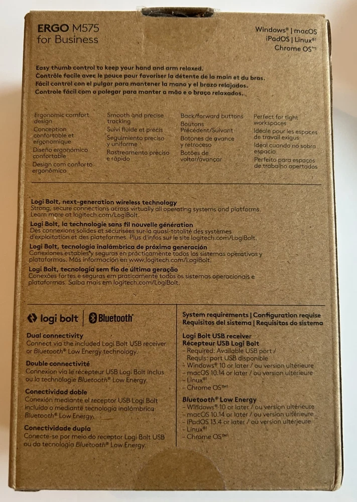 Elevate your computer experience with the Logitech Ergo M575 Wireless Trackball Mouse. Designed with comfort and precision in mind, this ergonomic mouse offers a significant reduction in hand movement, allowing for a more structured and strain-free workflow. Its sleek black design is not only aesthetically pleasing but also crafted for right-handed users, featuring five programmable buttons and a 4-way scroll wheel to tailor your control scheme. Enjoy the freedom of wireless connectivity with Bluetooth or USB options. The Logitech ERGO M575 comes with added conveniences such as an 18-month battery life, ensuring that you can work or play without interruption. Whether you're at an office, on a laptop, or engaged in a creative project, this trackball mouse is built to enhance your productivity and enjoyment.