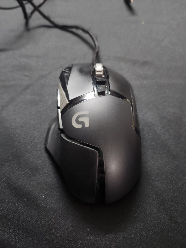 The Logitech G502 HERO is a black wired gaming mouse with a maximum DPI of 25600. It features programmable buttons, adjustable DPI, a scroll wheel, and adjustable weight. The mouse has a total of 10 buttons and uses optical tracking. The model is Logitech G502 HERO. This has been well used for a few years and then in a box for a few years. The mouse itself is fine with some cosmetic wear and tear. The wire casing is slightly scuffed, with part of the wire sticking out at one point. Product cleaned. No box or instructions.