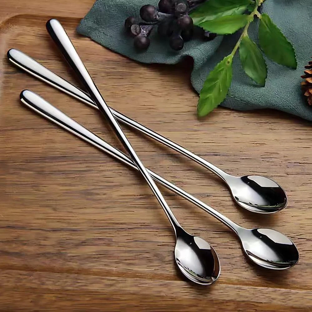9 inch long handle heavy-duty iced tea spoon can lead directly to the bottom of Ice cream soda glass, sundae and dessert cup, milk shake, tall coffee mugs 9 inch long handle heavy-duty iced tea spoon can lead directly to the bottom of Ice cream soda glass, sundae and dessert cup, milk shake, tall coffee mugs Made from high quality 18/8 stainless steel with extra thick ergonomics handle, durable high-polish finish, not rough and will never cut your hands and mouth Superior to all on the market, modern design slender streamlined handle, easily mixes with existing flatware Suitable for bar, home, party use, ideal for mixing drinks like lemonade iced tea, ice coffee, milkshakes, root beer floats and enjoying Sundaes, Bartending essential tool Dishwasher-safe without harsh detergents, An exceptional value and an excellent gift for any occasion.