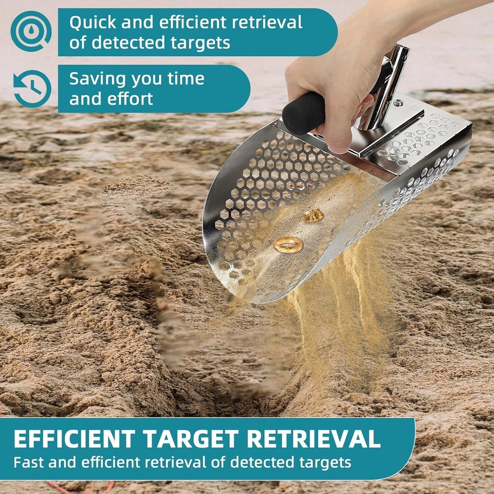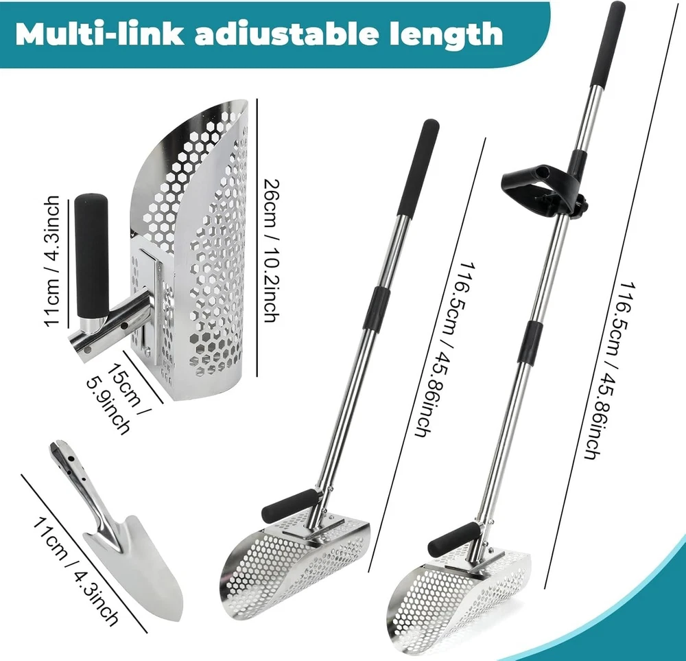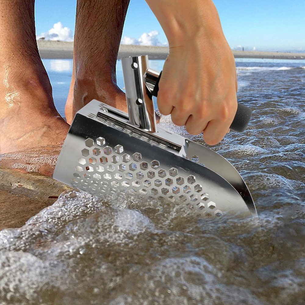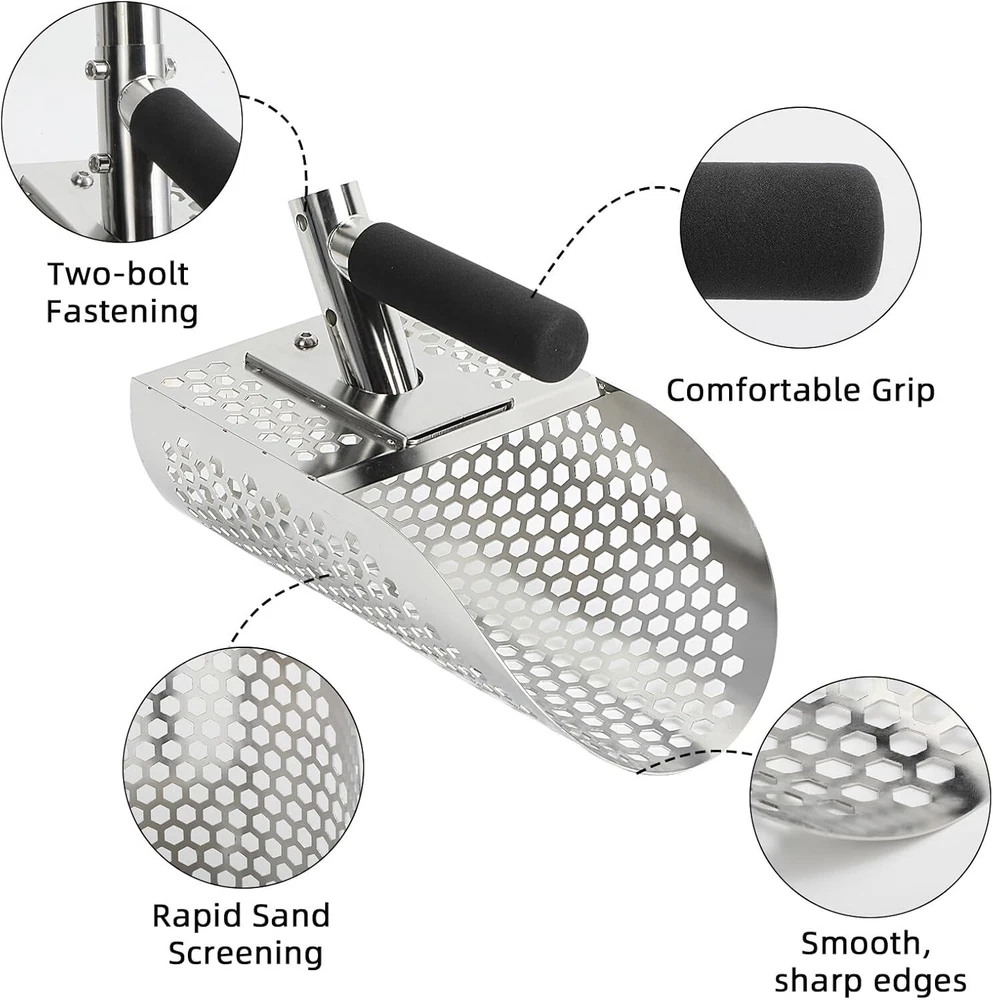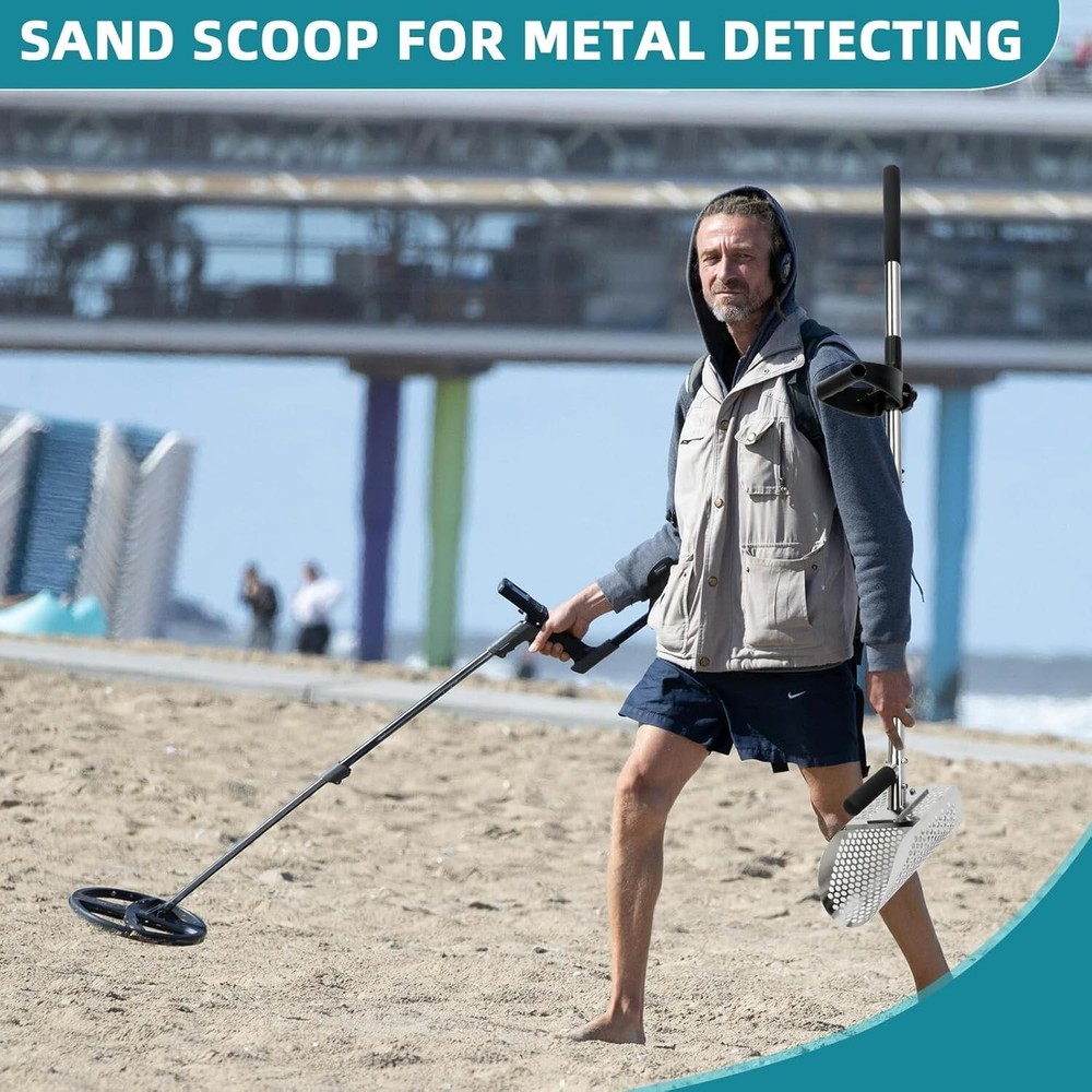 This sand scoop is a game-changer for metal detecting! The sturdy stainless steel construction handles tough beach conditions without rusting, and the adjustable length makes it easy to dig deep or work shallow spots. The two-in-one design works as both a scoop and shovel, perfect for sifting sand or digging underwater. The included rods let you customize the handle for comfort, and it’s surprisingly lightweight for how durable it is. No more bending over—this long handle saves your back while hunting treasure. A must-have for serious detectorists!