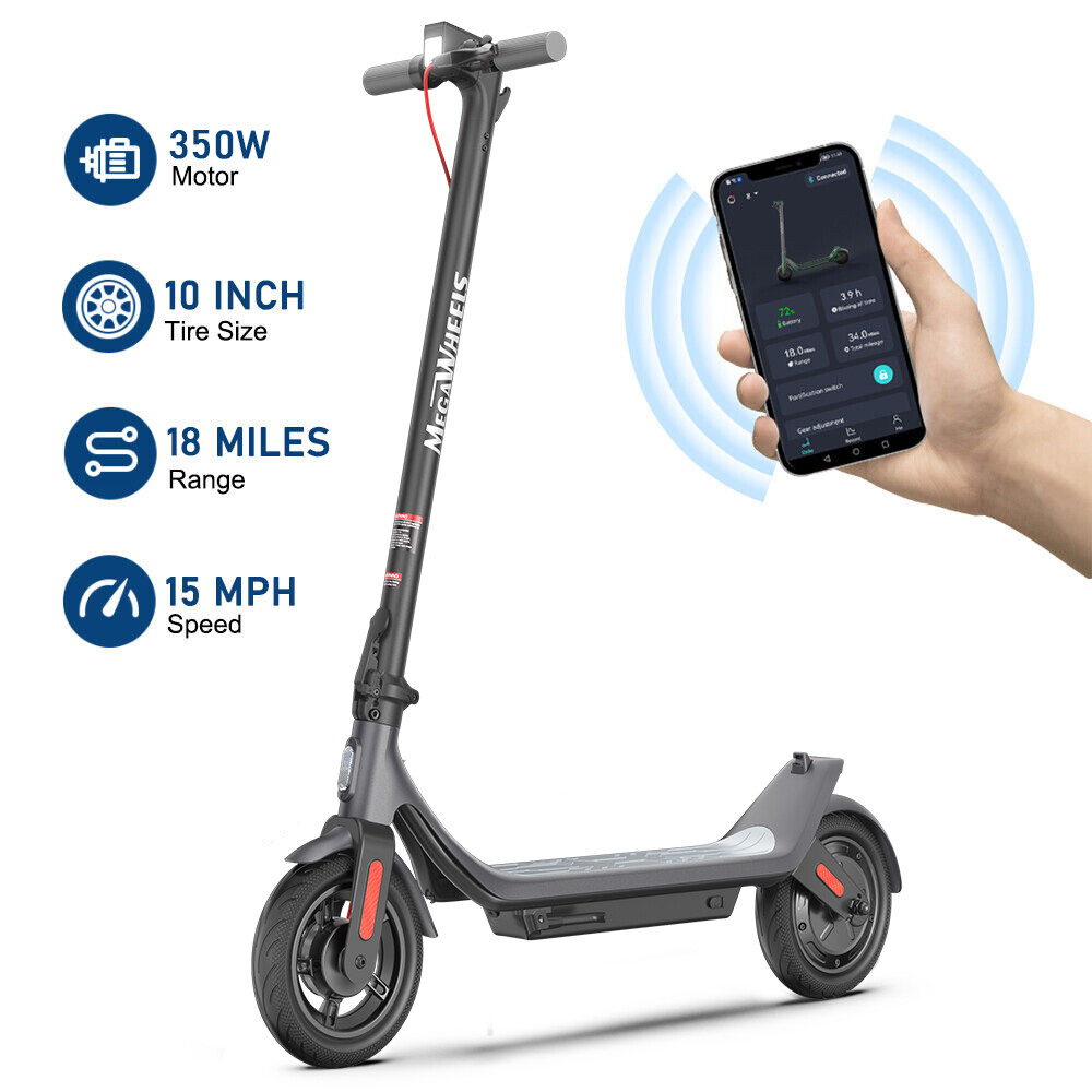 Model:A6LECO Features: Smart Dashboard : intuitive dashboard provides clear visibility of your current speed, speed modes, light status (on/off), and battery life, ensuring effortless monitoring and control throughout your journey. Long Battery Life and Waterproof : electric scooter is equipped with a large-capacity 10.2Ah battery, with a maximum cruising range of up to 18 miles, ensuring long-term uninterrupted riding, and is also waterproof for small raining. Portable Folding Design: Its rapid folding feature allows for easy handling and storage. Compatible with the majority of car models, it effortlessly fits into car trunks, ideal for daily commutes. Conveniently store it in office hallways or at home in your backyard or indoors , taking up minimal space. Safety Design : Safety is our top priority, so the electric scooter is equipped with warning tail lights and ultra-bright headlights to ensure visibility when riding at night. Smart APP Control : The APP is compatible with Android and IOS, connects to the electronic scooter via Bluetooth. You can control through the APP: Lock/Unlock, Light On/Off, Gear Position, Starting Mode (Zero Start or Non-zero Start), Top Speed, Cruise Control, etc. The App offer more functions for your electrical scooter. Specification: Brand: Megawheels Model: A6L ECO Net Weight: 36.05 LBS Expanded size(in): 44.29×17.32×47.40 After Folding(in): 44.29×17.32×21.06 Tire size: 10 inch Battery Capacity: 10.2 Ah Rates Power: 350W Charging time: 8H Maximum speed: 15 Mph Distance per charge: 18 Miles Grade ability: Approx. 15% Maximum load : 220 LBS IP Rating: IPX5 Age (years):10+ Height (in): 4.72~7.87 Packing List: 1 * Electric Scooter 1 * User Manual Model: S1 Specification: Dimension: Unfolding 900*420*(760-970)mm; Folding: 810*420*290mm Box Size:885*225*355mm Net Weight: 7.5kg Color: Black Frame Material: Aluminium Materials Tires: 6.0 inch solid front, 5.5 inch back Max Load: 90KG/198LBS Max speed: 23KM/h Mileage: 8-12km Grade Ability: 15 degree slope Brake Type: Power Brake, Mechanic brake(back tire) Mode Type of Motor: Brushless hub motor Rated Output Power: 250W Battery Type:High quality lithium battery Battery Capacity: 5.0Ah Battery Voltage: DC29.4V Charger Input Voltage: 100V-240V Charger Frequent: 50Hz/60Hz Charger Output Current: 2A Charging time: 3 hours Note:S1 Load capacity Recommended 68kg, Max 90kg Package Contents: 1 * Electric Scooter 1 * Battery charger 1 * User's manual Model: S10 Specification: Brand: Megawheels Model: S10 Dimension: Unfolding 105 x 43 x 118 cm; Folding: 105 x 43 x 48 cm Net Weight: 11.9kg Color: Black Frame Material: Aluminium Tires: 8.0" Honeycomb Front Tire & Solid Rear Tire Max speed: approx.25KM/h Speed level: Gear 1--Max 10km/h ; Gear 2--Max 20km/h; Gear 3--Max 25km/h Grade Ability: 20 degree slope Working Temperature: -15°C-50°C Storage Temperature: -20°C-25°C Mode Type of Motor: Brushless hub motor Battery Type: High quality lithium battery Battery Voltage: 36V Charger Input Voltage: 100V-240V Charger Frequent: 50Hz/60Hz Model-7.5AH: Battery Capacitiy:7.8 Ah Mileage: approx. 17-22km Max Load: 100kg Charging time: approx. 5 hours Model-5.0AH: Battery Capacitiy: 5.2 Ah Mileage: approx. 8-12km Max Load: 100kg Charging time: approx. 4 hours Package Contents: 1 * Folding Electric Scooter 1 * Battery Charger 1 * User's Manual NOTE:The appearance of the product you receive may vary slightly from the image shown due to differing production batches! Before use, please kindly read the schematic diagrams and assembly steps of manual to assemble the front wheel: 1. Step on the base, lift the fork firmly to remove the base. 2. Remove the rubber plugs on both sides of the front fork, and unscrew the front axle with the two 6mm hexagon wrenches in the package. 3. When installing the front wheel (please pay attention to the direction of the tread of the tire, as shown in the lower right or the inflation port to the right), and tighten the front wheel axle. 4. Plug back the rubber plugs on both sides of the front fork. Tips: Before riding the scooter, please put one foot on the scooter deck and the other foot on floor and push the scooter forward by kicking the floor for some distance, in this way, the scooter will get some impulse to run forward. Note: This products have been certified under UL2272 safety standards. On Feb 26, 2025 at 19:35:10 PST, seller added the following information: