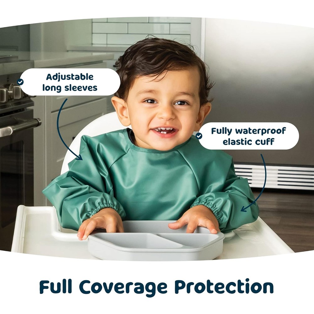Store New Arrivals Add to Favorite View Feedback Contact Long Sleeve Bib for Babies & Toddlers | 2-Pack Waterproof Smock Bib for Eating | Machine Washable & Mess-Proof Feeding Essentials | Newborn Shower Gift (Slate Olive,6–24M) Description Closure Type Hook and Loop Color Slate Olive Pattern Solid Product Care Instructions Machine Wash Size Small 6-24 Months 100% Polyester Imported EASY TO CLEAN: Simply wipe clean in seconds or toss in the wash for a refresh.. Our long-sleeved bib features quick-dry fabric and mess-friendly design, making it an ideal baby feeding bib for busy parents and everyday meals. MESS-PROOF MEALTIME: Our soft, waterproof bibs for babies feature gentle elastic cuffs and provide full-body coverage—just like a bib shirt or a full-body bib. They keep little ones clean and comfortable through every meal, snack, and adventure. An essential for daily use and mess-free play. FLEXIBLE COMFORT: Our lightweight bib with sleeves moves with your child, ensuring a soft, non-restrictive fit for every activity. Perfect as a baby food bib for mealtime, playtime, and on-the-go adventures. CERTIFIED NON-TOXIC: Tiny Twinkle's signature Mess-Proof fabric is OEKO-TEX Standard 100 certified and free of forever chemicals, PFAS, BPA, and phthalates. BOUT US: Tiny Twinkle is a baby products company based in Phoenix, Arizona. We create high-quality, safe products for babies, children, and parents alike so little ones can shine from the start. Product description Tiny Twinkle Full Sleeve Bibs Crafted with our signature mess-proof fabric The video showcases the product in use. The video guides you through product setup. The video compares multiple products. The video shows the product being unpacked. Tiny Twinkle Long-Sleeve Bibs Merchant Video Our full sleeve bibs are waterproof, lightweight, mess-proof, and include a crumb-catching pocket. They’re machine washable, perfect for meals at home or on the go. On-the-go Ready Unique flip pocket design folds the bib into its own pouch. Compact and portable, perfect for travel, daycare, or family outings. Soft & Lightweight Made with comfort in mind, move easily with your child and keep mealtime calm, clean, and carefree. Comfortable & Secure Soft, no-scratch Velcro closure fastens gently without pulling hair or irritating skin. Designed for comfort and perfect for babies who love to move. Mess-Proof & Machine Washable Waterproof, lightweight, mess-proof, with a crumb-catching pocket! Our bibs are machine washable, perfect for meals at home or on the go. Are Tiny Twinkle Bibs PFAS Free? Yes. Tiny Twinkle Mess-proof Bibs are made without PFAS, BPA, or other harmful substances—safe for babies and the planet. What is the purpose of the snaps inside the bib pocket? They allow you to roll the bib into its own pocket and snap it shut for compact, on-the-go storage. Always store it clean and dry. What are these bibs made of? Tiny Twinkle bibs are made from 100% recycled polyester. They’re lightweight, durable, and easy to wash—designed to handle daily messes and frequent use with ease. Are these bibs stain resistant? Yes. Our mess-proof fabric helps prevent most stains. For tougher spots like tomato sauce or carrot, rinse promptly with cold water, gently rub with soap or detergent, let it rest for a few minutes, then rinse again. Are these bibs machine washable? Yes. Our Mess-proof bibs are machine washable. For best results, use a warm wash with gentle detergent and tumble dry on low heat. If air-drying, hang to dry completely before storing to help prevent odor. Non-Toxic & Baby Safe Truly Free of "Forever Chemicals" Safe for babies — made without PFAS, BPA, phthalates, or lead. Sustainable & Thoughtful Bibs Made from Recycled Plastic Bottles ! Our Mess-proof fabric helps reduce plastic waste and uses fewer resources—better for the planet. Trusted quality A Safe Choice for Your Little One! Certified to STANDARD 100 by OEKO-TEX to ensure fabrics are safe and gentle for daily wear. Better choices Recyclable Packaging for a Better Planet Through FSC, we help protect forests and promote responsible forestry for future generations. 1 PFAS and BPA Free 2 Recycled Fabric (rPET) 3 OEKO-TEX 100 Standard 4 FSC Certified Packaging Tiny Twinkle Best Sellers Add to Cart Add to Cart Add to Cart Add to Cart Customer Reviews 4.8 out of 5 stars 5,445 4.8 out of 5 stars 46 4.8 out of 5 stars 31 4.2 out of 5 stars 36 4.7 out of 5 stars 713 4.7 out of 5 stars 6,123 4.7 out of 5 stars 5,104 Price $15.95 $ 15 . 95 $29.95 $ 29 . 95 $25.95 $ 25 . 95 $35.96 $ 35 . 96 $21.56 $ 21 . 56 $18.95 $ 18 . 95 $19.76 $ 19 . 76 Waterproof Recycled Fabric ✔ ✘ ✔ ✔ ✔ ✔ ✔ Machine Washable ✔ ✘ ✔ ✔ ✔ ✔ ✔ Available Sizes Small and Large One Size One Size One Size One Size One Size Small and Large Age Range 6 Months - 4 Years Child to Adult 6 Months - 4 Years 6 Months - 18 Months 6 Months - 2 Years 6 Months - 36 Months 6 Months - 4 Years Feature Tug-proof Velcro Closure Ultra Soft Folds Completely Flat Wipe Clean Snap Handle Tug-proof Velcro Closure Tug-proof Velcro Closure Feature Reversible Travel Pocket No Smell & Hypoallergenic Structured & Sturdy Non-slip & Safety strap PFAS and BPA Free PFAS and BPA Free PFAS and BPA Free ABOUT US We offer the best prices around on high quality products. Our E-store includes media such as books, movies, music and games while offering electronics, toys, sporting apparel, clothing, tools, general home, garden items and more. SHIPPING We are always working hard to ensure your package arrives as soon as possible. Please understand that some factors like weather, high postal traffic, and the performance of shipping companies are outside of our control. We offer free shipping to the lower 48 states and ship within 2 business days of payment, usually sooner. We do not accept P.O. Boxes. Please provide a physical address. For shipping outside of the continental USA, we only use eBay's Global Shipping Program.The item is 