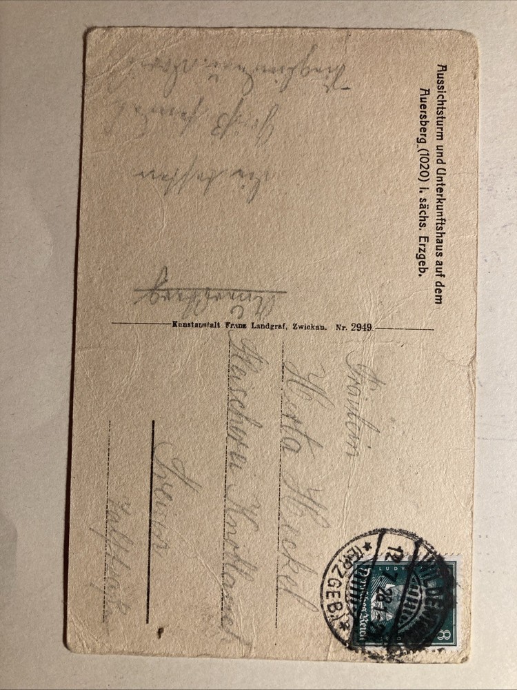 Erhaltungszustand siehe Fotos! Bitte beachten Sie meine weiteren Angebote! Bitte fordern Sie am Ende Ihrer Käufe eine Gesamtrechnung an damit ich für Sie den Versand kombinieren kann!! Versand in das Ausland möglich! Versandkosten entnehmen Sie bitte der folgenden Übersicht 1-2 AK 1,00 (international 1,30) Euro 3-5 AK 1,20 (international 1,90) Euro 6-50 AK 2,00 (international 3,70) Euro 1-30 Photos (Großformat) 2,00 (international 3,70) Euro Condition see photos! Please note my other offers! Please request a total invoice at the end of your purchases so that I can combine shipping for you!! Shipping abroad possible! Please refer to the following overview for shipping costs 1-2 AK international 1,30 Euro 3-5 AK international 1,90 Euro 6-50 AK international 3,70 Euro 1-30 photos (large format) international 3.70 Euro Tauchen Sie ein in die historische Schönheit des Erzgebirges mit dieser authentischen Ansichtskarte aus der Zwischenkriegszeit, die den Aussichtsturm und das Unterkunftshaus auf dem Auersberg zeigt. Ein Muss für Sammler regionaler Echtfotos, die das berühmte Bergmassiv, die Architektur und die touristischen Attraktionen des Sachsenlandes in den Jahren 1918 bis 1939 präsentieren. Diese Karte, eine einzelne Einheit in einer Serie von Topografie-Karten, ist nicht nur für Liebhaber der deutschen Erzgebirgischen Geschichte, sondern auch für Enthusiasten der Städte- und Gemeindebaugeschichte von großem Interesse. Ergänzen Sie Ihre Sammlung um dieses Stück Zeitgeschichte und genießen Sie die faszinierende Motivität dieses einzigartigen Ortes.