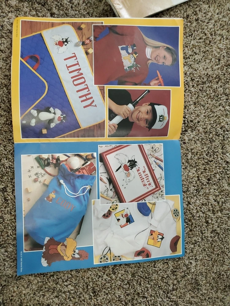 This cross stitch book features 37 designs inspired by the classic cartoon characters of Looney Tunes. It was published in 1995 by Leisure Arts and is model number 2723. The book is perfect for anyone who loves to create handmade crafts with a touch of nostalgia. The designs include various Looney Tunes characters and can be used to make clothes, home decor, and other cross stitch projects. The book was made in the United States and belongs to the Crafts and Needlecrafts & Yarn categories on eBay. Get ready to let your creativity run wild with this fun and colorful cross stitch book!