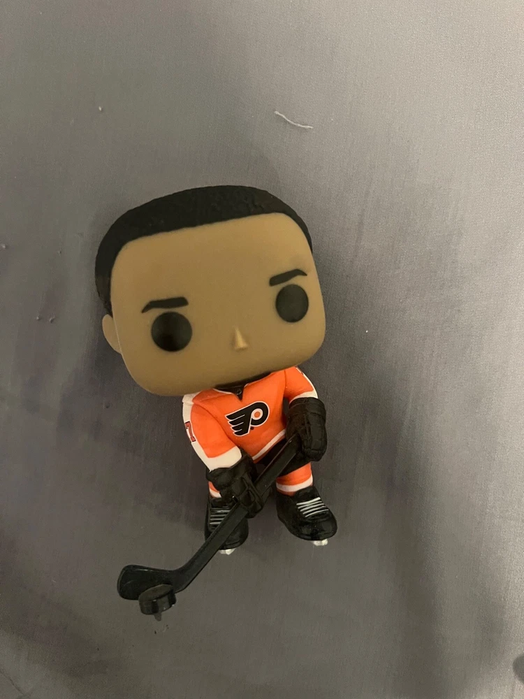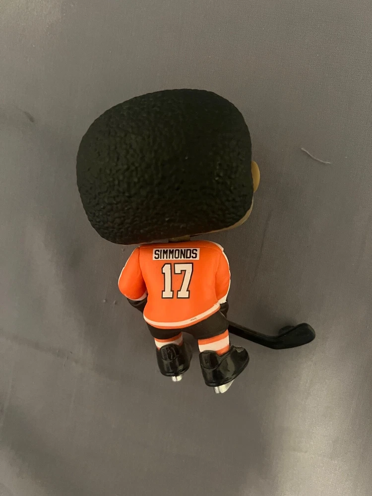 This FUNKO POP! vinyl figure features Wayne Simmonds of the NHL's Flyers, with box number 18. It is a standard size collectible item made of vinyl material. The figure showcases Simmonds in his Flyers uniform and is a great addition to any hockey fan's collection. This item is unopened and in its original packaging, making it a perfect gift for fans of the Flyers or collectors of sports memorabilia. It was released in 2017 and is a part of the Pop product line. The figure is a modern piece, manufactured in China, and is suitable for ages 3 and up. Add this Flyers WAYNE SIMMONDS vinyl figure to your collection today!
