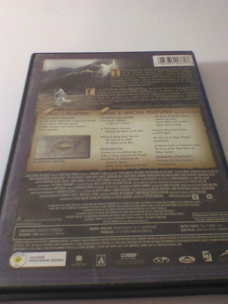 Immerse yourself in the epic conclusion to a timeless saga with "The Lord of the Rings: The Return of the King" on DVD, a 2-disc set that promises to captivate from the comfort of your home. Directed by Peter Jackson, this film brings to life the incredible journey of Frodo and his companions as they battle against the dark forces of Sauron in a showdown that will determine the fate of Middle-earth. This set offers both English and French language options and is compatible with Region 1 players (US, Canada). Rated 14A, it's an edition that Newline Studios can be proud of, presenting the Full Screen format, ensuring that viewers enjoy the full cinematic experience of the Sci-Fi & Fantasy genre. The franchise's die-hard fans and newcomers alike will find this collection a valuable addition to their movie libraries. The condition of games /dvd/ Blu-ray as follows . These games /dvd/ Blu-ray were found either in a storage unit or X Library. Therefore I am going to list them as acceptable because there are some scratches on the back of the disc or the case might be wonky in closing of the case. All other conditions are in photographs.