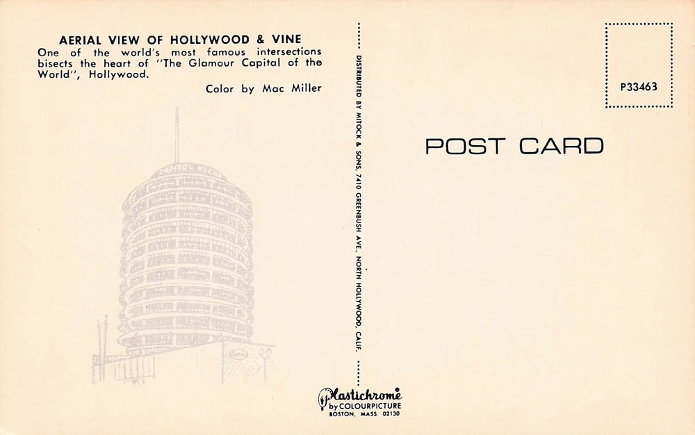 Los Angeles CA California Hollywood Blvd Capitol Records Bldg Vtg Postcard D64
