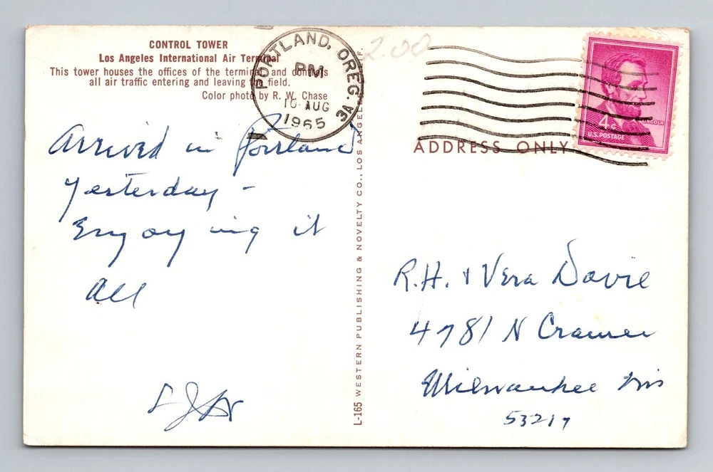 Los Angeles CA-California, Control Tower, Air Terminal, Vintage c1965 Postcard