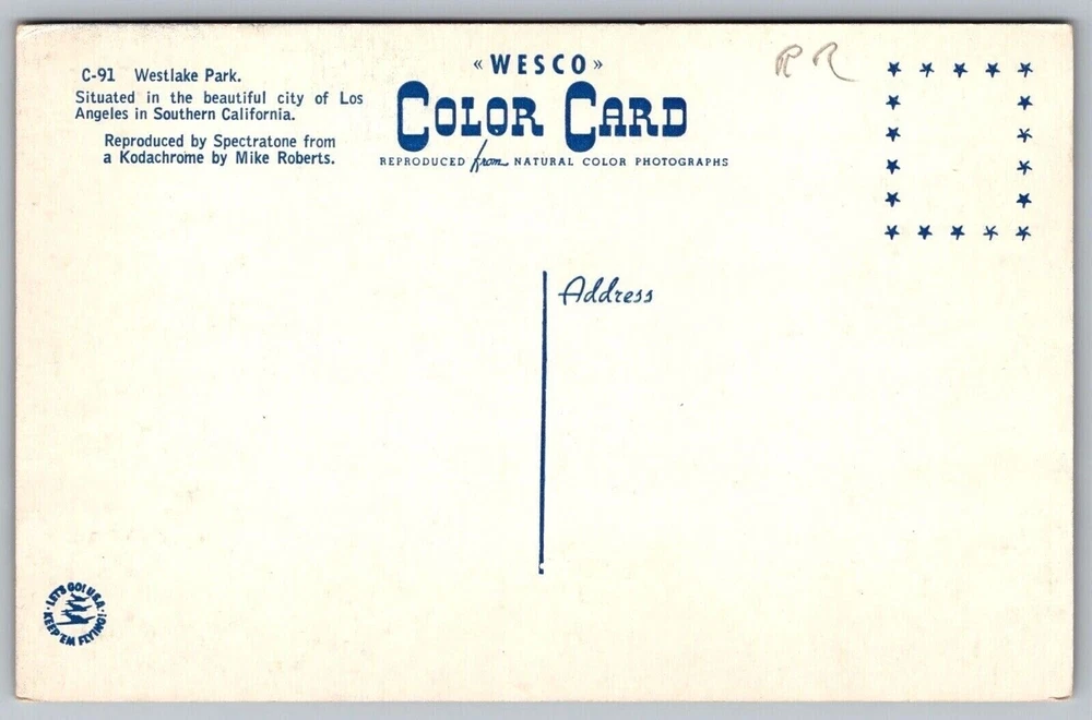 Los Angeles California Westlake Park Scenic Landmark Chrome UNP Postcard You will receive the exact postcard in the picture. We use a high quality scanner to capture pictures of the front and back for every postcard we have listed. Postcards will be in the condition as shown in the pictures. We ship Mon-Fri. We also offer combined shipping discounts or free shipping. If we have shipping on your listing you can buy as many additional postcards as you want and they will ship for free after the fist postage is paid. If you select first class shipping and pay the extra your postcard will be shipping as a package with extra protection. If you choose free shipping or $1.50 shipping your postcard will be shipped in a standard envelope with soft plastic sleeve and do not bend written on the envelope. Orders of 15 or more cards or with single cards over $20 in them will automatically be upgraded to first class and at least a photo mailer. If you have any questions feel free to ask. We are willing to consider reasonable offers and we offer discounts on orders of more than one card. Thank You _gsrx_vers_1436 (GS 9.0.5 (1436)) _gsrx_vers_1608 (GS 9.5 (1608)) _gsrx_vers_1653 (GS 9.7.5 (1653))