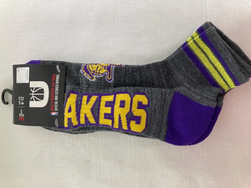 Time for new socks! Hello Lakers Fans! Three Pairs NBA licensed crew socks One in black, one in purple, and one in gray. Quarter Cut New with tags Men's Size: Shoe size 6 - 12 Los Angeles Lakers Crew Socks 3 PAIRS NBA Basketball Mens Black Purple Gray 3PC Los Angeles Lakers Crew Socks 3 PAIRS NBA Basketball Mens Black Purple Gray 3PC Click images to enlarge Description Hello Lakers Fans! Three Pairs NBA licensed crew socks One in black, one in purple, and one in gray. Quarter Cut New with tags Men's Size: Shoe size 6 - 12 Shipping I am lucky to have lightening fast, USPS, service, and a Blue Box on the corner. My feedback shows people are thrilled with how fast their package arrives. Terms of Sale I strive to avoid returns, by posting lots of pictures, and providing measurements. Still, if you have to return something, the item has to be in the same condition as it was shipped, with no damage, or wear, and all tags intact. With clothing, it's always a good idea to check the measurements with a similar item that you already own. If you ever need more details or measurements, please don't hesitate to ask. About Us I want to WOW you! Not only with your purchase, but with my customer service. I want you to marvel at how quickly your package arrives, and it to be just what you expected, if not more. Get images that make Supersized seem small. Showcase your items with Auctiva's Listing Templates! THE simple solution for eBay sellers.