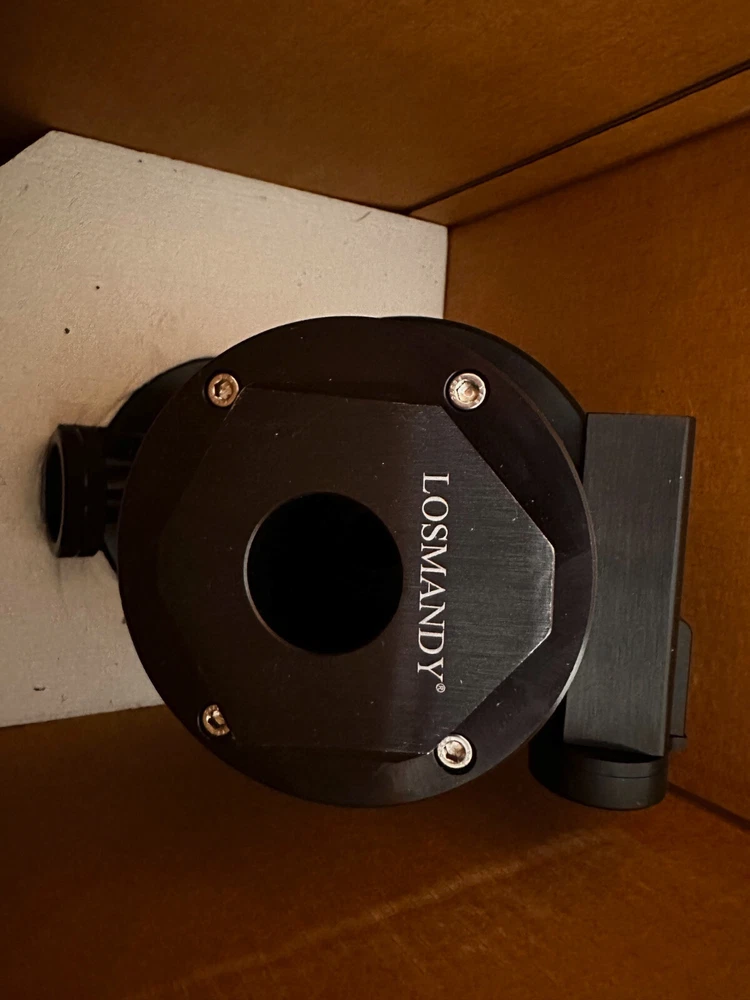 PICS coming soon ... (LOCAL Pick Up is Available) over $1100 of OEM LOSMANDY accessories included. FREE glow in the dark trip pod feet/anti-slip for your FHD-MA tripod, ($199 value) PLUS counter weights set as pictured PLUS LOSMANDY DoveTail plate (129$ value) PLUS LOSMANDY RA extension for (for quick disconnect of EQ head $499 value) PLUS LOSMANDY POLAR SCOPE ($299 value) unit purchased from B&H, never assembled. will be shipped in B&H packaging. there are alot of B&H boxes .... Pics coming soon ... Mount Machined aluminum and stainless steel Scratch-resistant and reflection-limiting black anodized finish All stainless steel hardware resists wear 75-pound payload capacity to handle large OTAs and accessories Altitude adjustment range: 12-70° with locking tangent arm Laser-engraved latitude scale in 2° increments Single knob azimuth control with ±10° travel Dual X-Y axis bull's-eye bubble levels Dual dovetail saddle accepts large Losmandy D-style or standard Vixen-style plates Removable 1.25"-diameter stainless steel counterweight shaft with 21-pound counterweight Tiltable control panel for easy access Disassembles into two parts for easier transport: RA module weighs 44 pounds, dec module weighs 18 pounds for a total weight of 62 pounds Optional Northern Hemisphere polar alignment scope 12-18 VDC, 500mA power requirement Motors and Gears Motor: Dual-axis DC servo motors ±0.5 arcsec resolution Reversible motors for use in Northern and Southern Hemispheres Gears: Stainless steel hardware Variable-slip clutches for manual use Right ascension axis: Brass worm wheel Worm gear: 6.75" diameter, 270 tooth, 7075 aluminum 5.062"-diameter needle thrust bearings, 3.5" sealed ball bearings, 3.1" sealed worm gear ball bearings Declination axis: 360° dec axis rotation allows for continuous tracking through the meridian without requiring a time-consuming "meridian flip" One 3.750"-diameter needle thrust bearing, one 2" needle thrust bearing, two 1.5" needle bearings 5.625"-diameter, 360 tooth, 7075 aluminum worm gear Dual supported ball bearings, brass worm wheel 1.25" stainless steel shaft Gemini 2 GoTo Hand Controller Full-color graphic touch screen clearly displays all functions 40,000+ object database Multi-star alignment assistance; requires at least two stars for initial alignment with option for more stars to improve alignment, GoTo, and tracking precision Tracking rates: Sidereal, Solar, Lunar, King's Periodic Error Correction (PEC) improves tracking precision over time Declination backlash compensation allows users to program out intrinsic play between gears for smoother and more precise tracking Northern and Southern Hemisphere modes Auto-guider port Control panel dimmer Non-volatile memory and real-time clock preserve settings when turned off and power disconnected Ethernet 10/100 with full IP function permits operation from anywhere using a browser, ASCOM, or app over the web or serial port Supported languages: English, German, French, and Spanish Ships with Level 6 firmware, upgradable via Internet Dual 12-18 VDC input/output (3.0A) for accessories Database: Solar system: Planets, Sun, Moon Bright Star List (BSL) Named constellations and stars IC catalog Lynds' Catalog of Bright Nebulae Lynds' Catalog of Dark Nebulae Messier Catalog NGC Catalog Strasbourg-ESO Catalogue of Galactic Planetary Nebulae Smithsonian Astrophysical Observatory Star Catalog Sharpless Catalog 2 Southern constellations and stars Washington Double Star Catalog User defined Tripod Maximum payload capacity: Carries up to 425 pounds Machined aluminum with scratch-resistant black anodized finish Adjustable height from 33 to 52" to accommodate a variety of users and viewing positions Independently adjustable leg angle with position locks Large locking knobs for leg sections enable the legs to be firmly set in place even when wearing gloves Large and heavy construction to provide stability and vibration reduction Folded completely with legs fully retracted: 39 x 14 x 14" Weight: 35 pounds