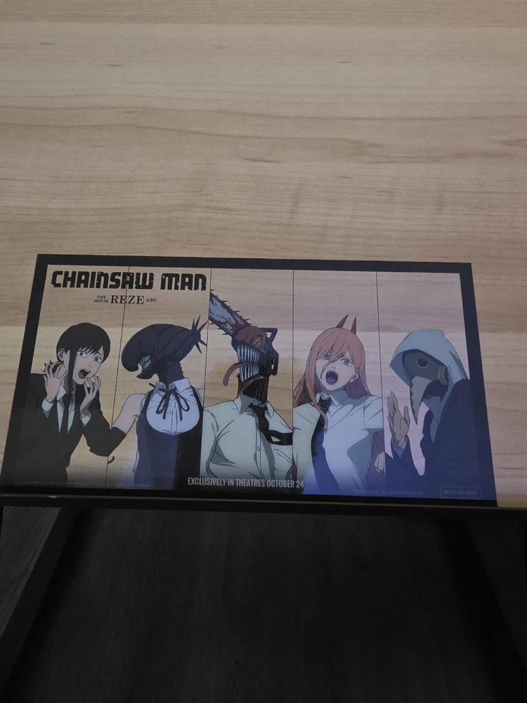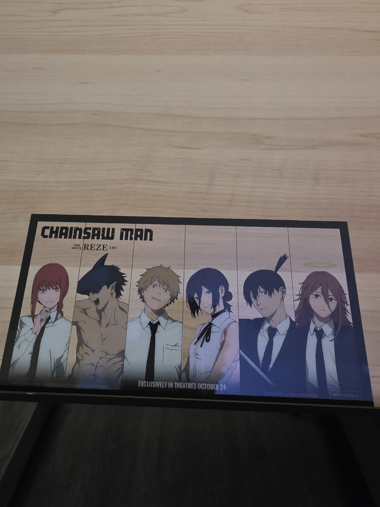 This product includes two clear plastic art post cards featuring characters from the anime series Chainsaw Man, specifically Reze and Arc. The mini poster is also included as part of this limited edition collection. The items are in English and come from the United States, making them a unique addition to any anime and manga fan's collection. The chainsaw man-themed artwork captures the essence of the popular TV show and movie, making it a must-have for fans to enjoy. Exclusive transparent collectible cards for the film CHAINSAW MAN: Reze Arc. YOU WILL GET BOTH SEEN Limited Edition Promo Face Cards: BOTH translucent cards included as seen in pics. Includes the characters Makima, Beam, Aki, Angel Devil, Reze / Bomb Devil, Denji / Pochita Chainsaw Devil, Power, Galgali, Kobeni Face cards SIZE measures approx 8” x 4”, mini poster size 11" x 17", and Will be shipped securely to ensure no bends…