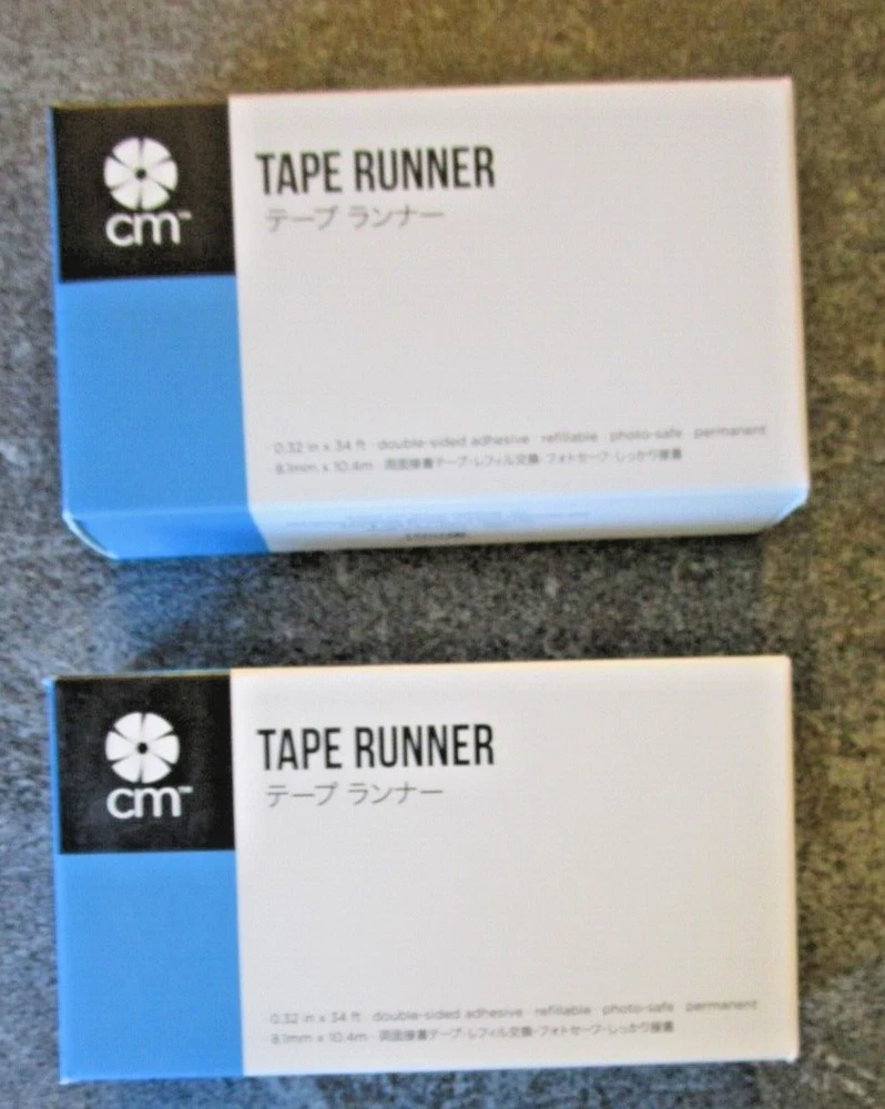 Lot 2 Creative Memories TAPE RUNNER - NEW Sealed 34' per runner .32 in x 34 feet double sided adhesive, refillable, photo safe Packages sealed. New. White with CM blue. Earlier style packaging - 2017, but same product as currently available. This is the regular tape runner, not the repositionable tape runner. I will combine shipping for multiple purchases.
