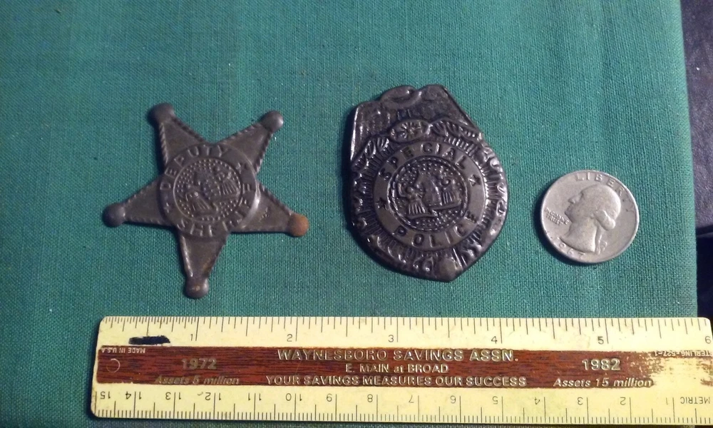 HomeLot 2 VINTAGE 1950's Tin Toy Western DEPUTY SHERIFF & Special Police Badge JAPAN
