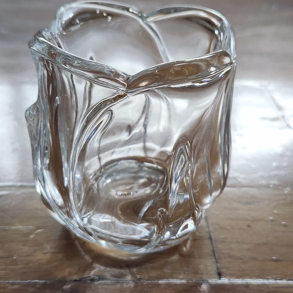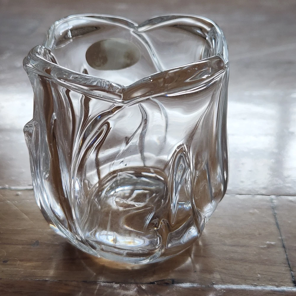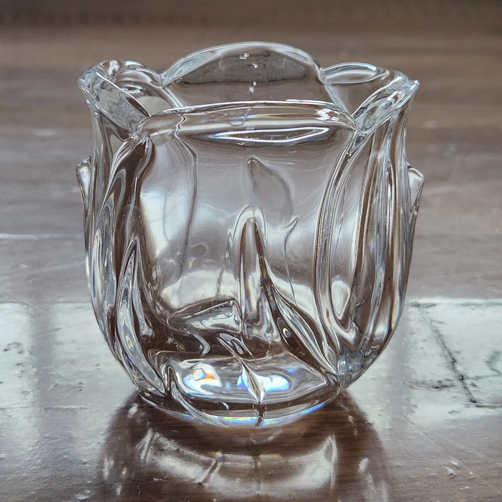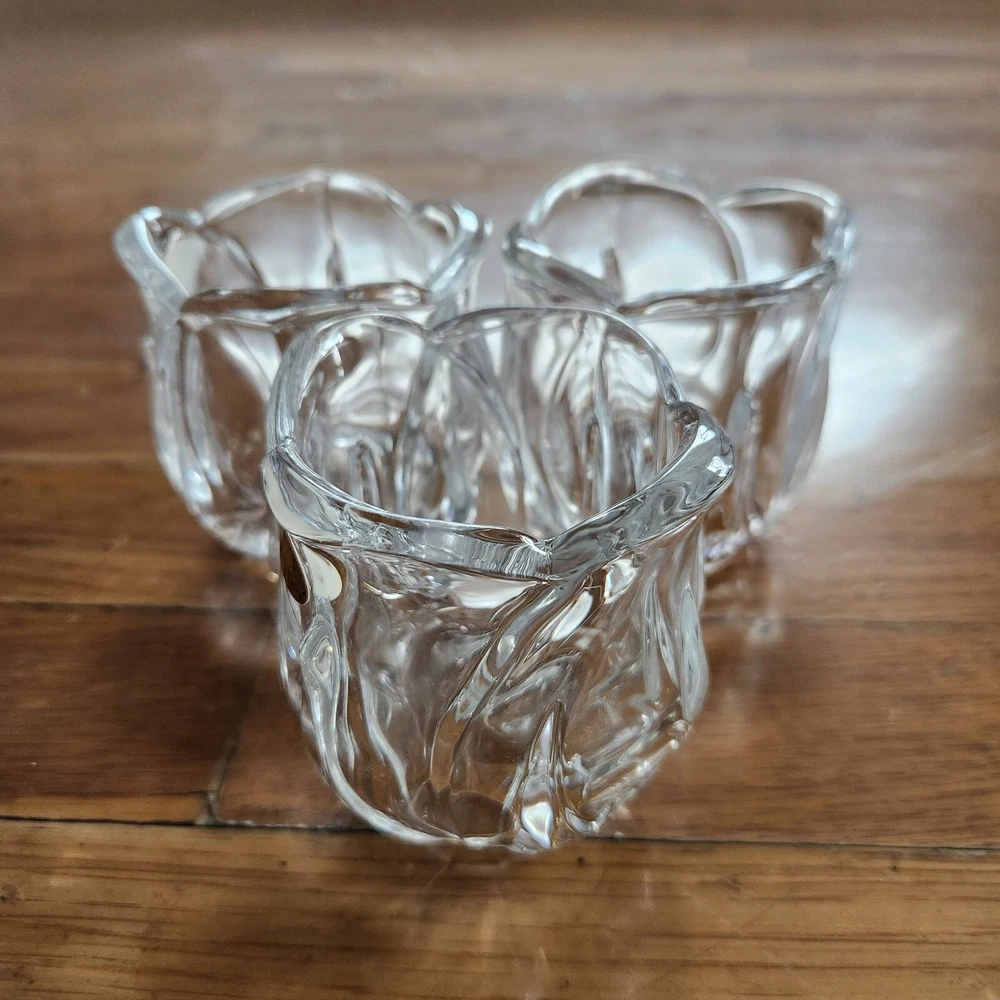 Add some sparkle to your space with this set of three votive candle holders. The tulip shape and heavy glass material make these holders both elegant and sturdy. The clear glass allows the light to shine through, creating a warm and inviting atmosphere. Each holder is adorned with beautiful crystals, adding a touch of glamour to any room. Perfect for use during a cozy night in or for adding some ambiance to a special event. These votive candle holders will make a stunning addition to any collection. ALL ITEMS HAVE BEEN WASHED/LAUNDERED PER EBAY STANDARDS