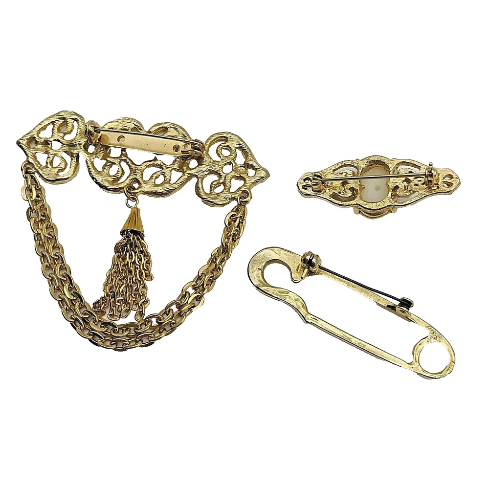 Vintage Brooch Pin Lot of 3 Gold Tone Retro Victorian Look Tassel Gems Thanks for looking… Please review photos closely. Message me for any questions you have. 1860