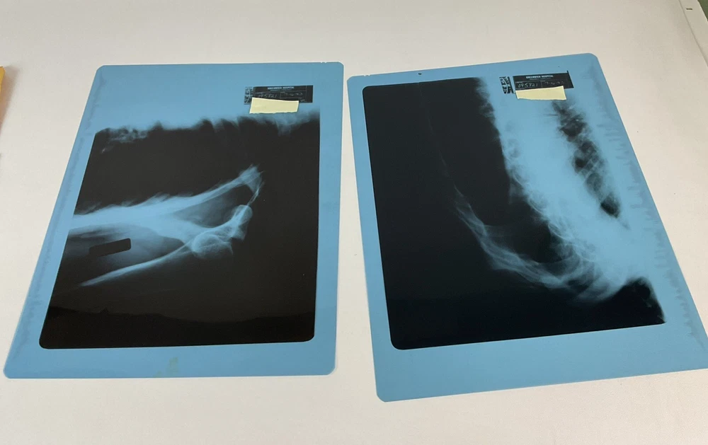 This lot of 12 X-ray films includes hips, pelvises, and shoulders, making it an oddity collection for medical device enthusiasts. The films were manufactured in the United States and are a great addition to any collection of science and medicine memorabilia. These X-ray films are perfect for those who appreciate the history of medical technology and want to add a unique piece to their collection. They are ideal for display in a home or office and make a great conversation starter. Don't miss out on the opportunity to own this rare and interesting collection.