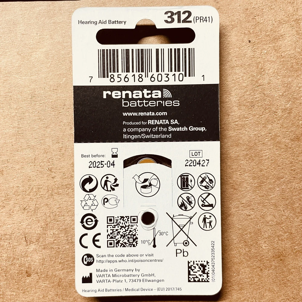 Lot Of 19, Renata Size 312 Hearing Aid Batteries-6 Pack, Exp. 2025.