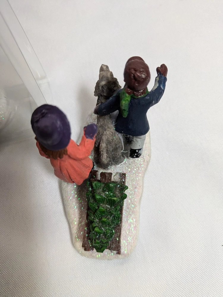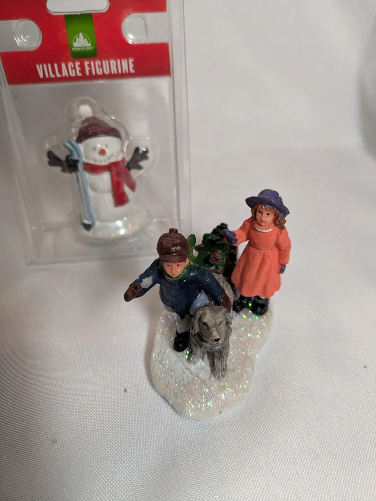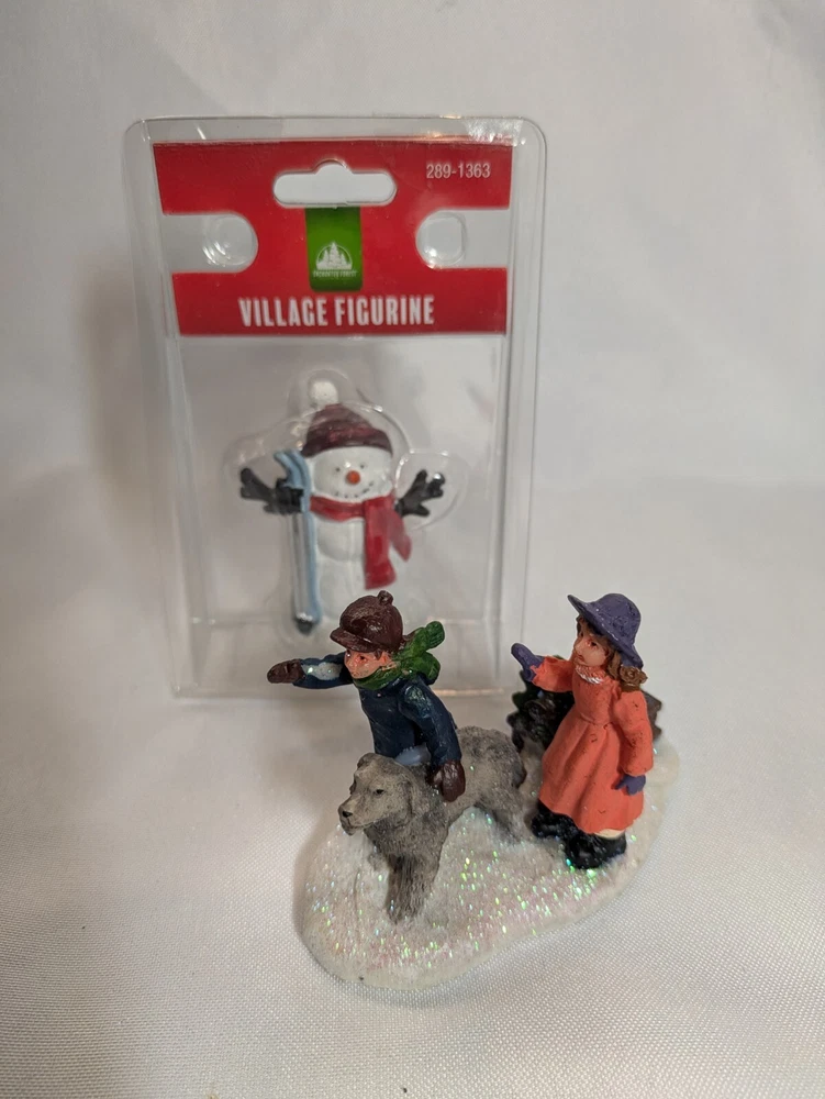 Lot Of 2 Christmas Village Figures Snowman With Skies & Children Will Dog Accessories. You will receive the items pictured. The snowman is new in the package. See all pictures for item and condition. No returns Thanks