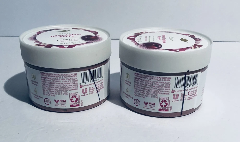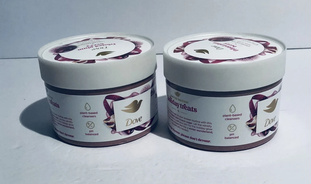 Period After Opening (PAO): 12M Body Area: Full Body Active Ingredients: Glycerin Ingredients: Glycerin, Water Type: Body Scrub Main Purpose: Excessive Oil Formulation: Cream Set Includes: Body Scrub Color: Cream Features: Hydrating Country/Region of Manufacture: United States Scent: Frosted Plum Berry Product Line: Dove limited edition Brand: Dove Department: Unisex Size: Regular Volume: 10.5 fl oz Skin Type: All Skin Types