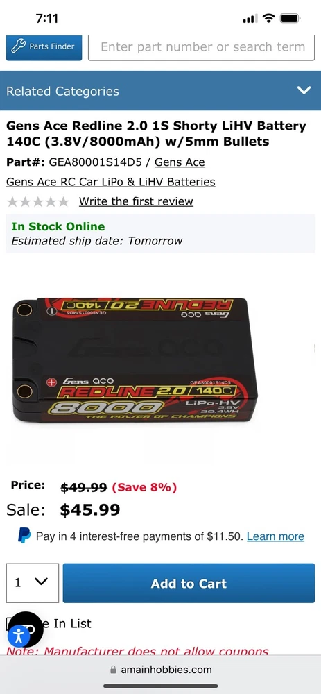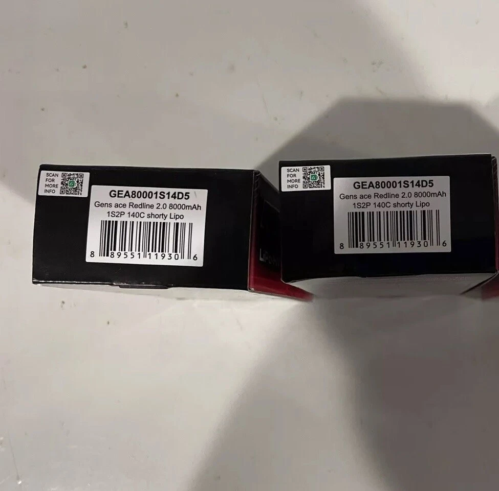 2 packs included. GENS ACE 1s 8000mah lipo batteries. These were used 1 race day for 1/12 racing (3 heats and 1 main). They were charged at 20 amps. Never overheated. Not puffed. Hold a charge and work fine. Ask any questions before buying! No returns or refunds.