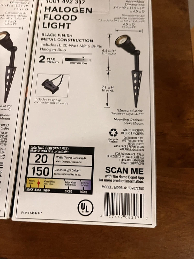 Illuminate your outdoor space with this lot of 2 Hampton Bay Low Voltage Flood Lights in sleek black. The glass material and corded electric power source make it a durable and reliable choice for any outdoor installation area. These floodlights features a low voltage design for energy-efficient and safe lighting. The floodlight is designed for easy installation and comes with a manufacturer part number of HD28724BK. Enhance your outdoor lighting with this stylish and functional floodlight.