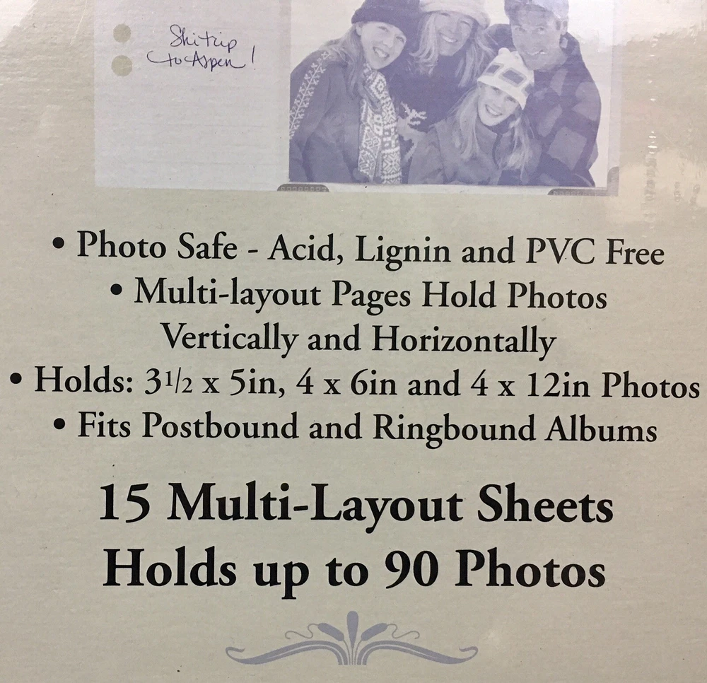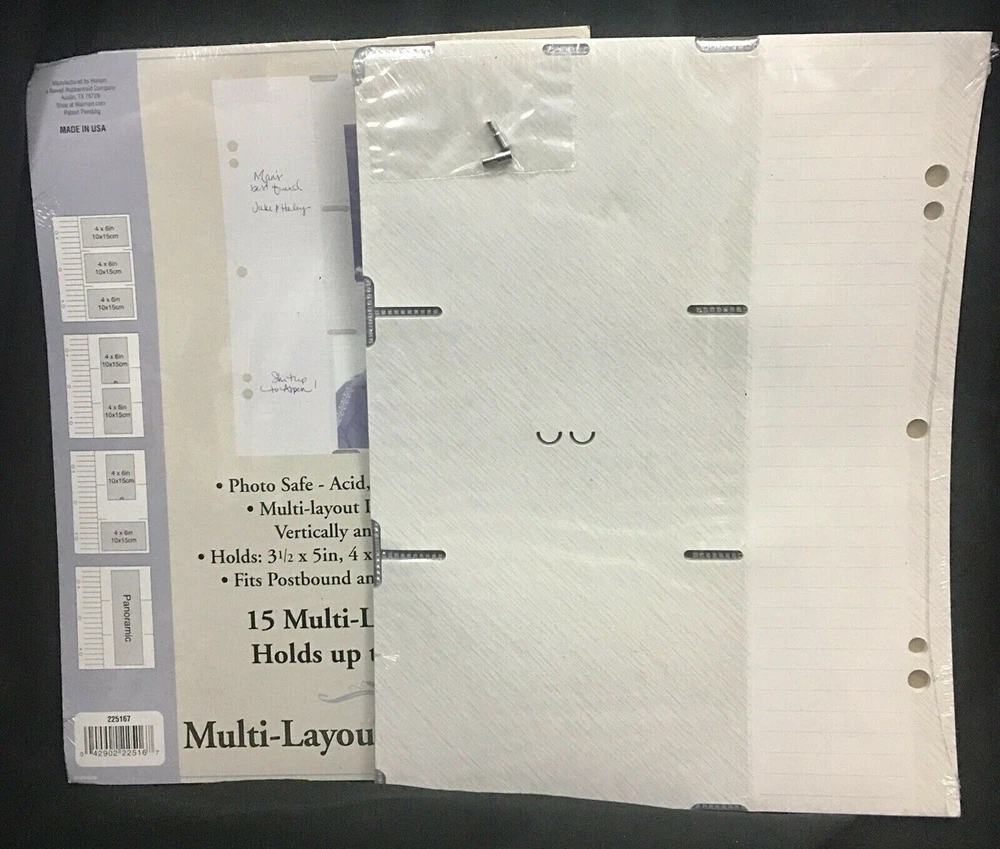 LOT OF 2! Multi Layout Photo Album / Memory Book Pages or Refills • 15 Multi- Layout Sheets • clear pockets to hold horizontal or vertical prints up to 4" x 6", plus panoramics! • Holds up to 90 Photos • Memo Area Next To Each Pocket, which allows space for more writing. You are able comment and write thoughts, detailed memories and share this with loved ones through photo and words. • Holds: 3.5 x 5in, 4 x 6in and 4 x 12 in Photos • can hold Panoramic • Photo Safe - Acid Free, PVC Free Easy to Use Slip in Pockets hold 4x6 photos horizontally and vertically Also holds 4x12 panoramic photos Fits ringbound and postbound albums / scrapbooks / memory books ***multiple shipping options! New, Sealed in Original Packaging! Please See Additional Pictures For Details!