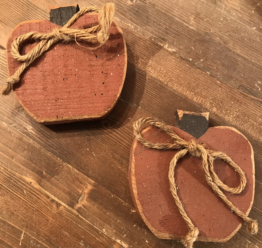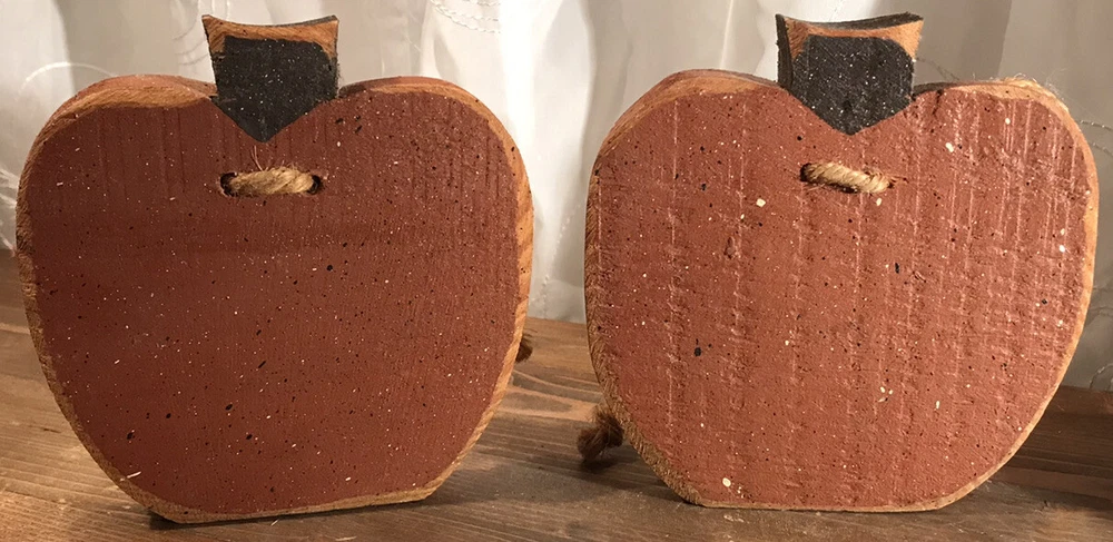 This lot includes two charming wooden pumpkins with twine bows, perfect for adding a festive touch to your Thanksgiving table decor. Crafted from high-quality wood, these figurines boast intricate detailing and a farmhouse-inspired design that's sure to impress your guests. The pumpkins are in great shape and ready to be enjoyed for years to come. Whether you're a collector of seasonal decor or simply looking to spruce up your home for the holidays, these Wooden Pumpkins are a must-have. Don't miss out on the chance to add a touch of rustic charm to your home this Thanksgiving season! Measurements approximately: 5” x 5” x 1”