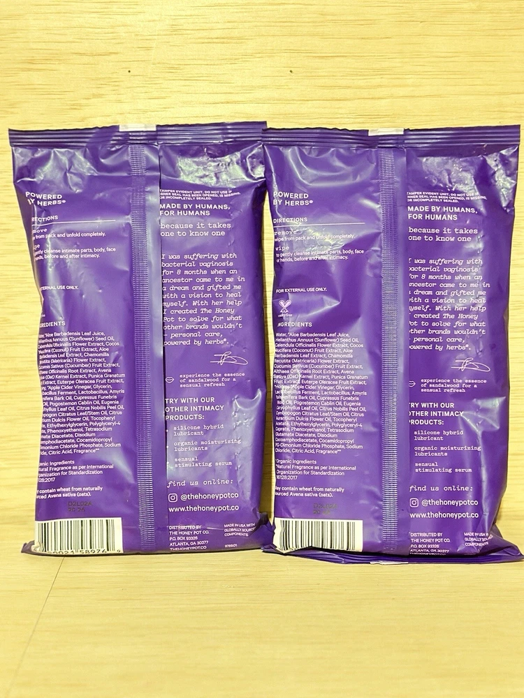 Lot Of 2-Extra Large The Honey Pot Company Intimacy Wipes, 20 Count Each. Plant base