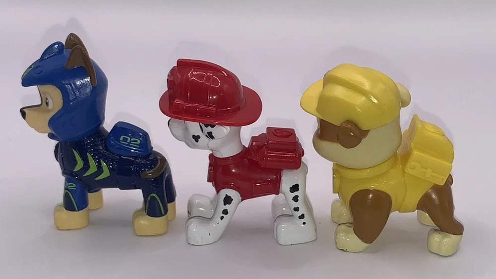This lot includes three Power Patrol action figures that are perfect for any Paw Patrol fan. These original figures are made of durable plastic and feature the beloved cartoon and TV characters from the hit TV show. The figures are from the franchise and are perfect for collectors or children who want to play with their favorite characters. The action figures are not vintage and were manufactured between 2010 and 2019.