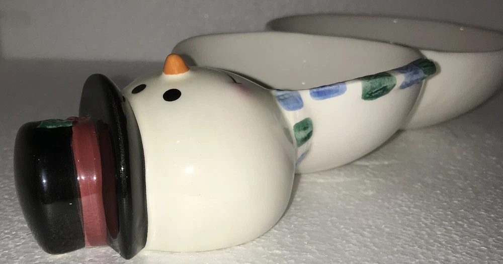 Add a touch of festive charm to your winter decor with this lot of 3 vintage snowman dishes. These medium-sized figurines feature an all-over multicolor pattern and are made of ceramic and porcelain materials. Perfect for the holiday season, these snowman dishes are a great addition to any collection and are sure to delight all who see them. The seasonal theme and intricate details make these dishes a must-have for collectors and enthusiasts alike.