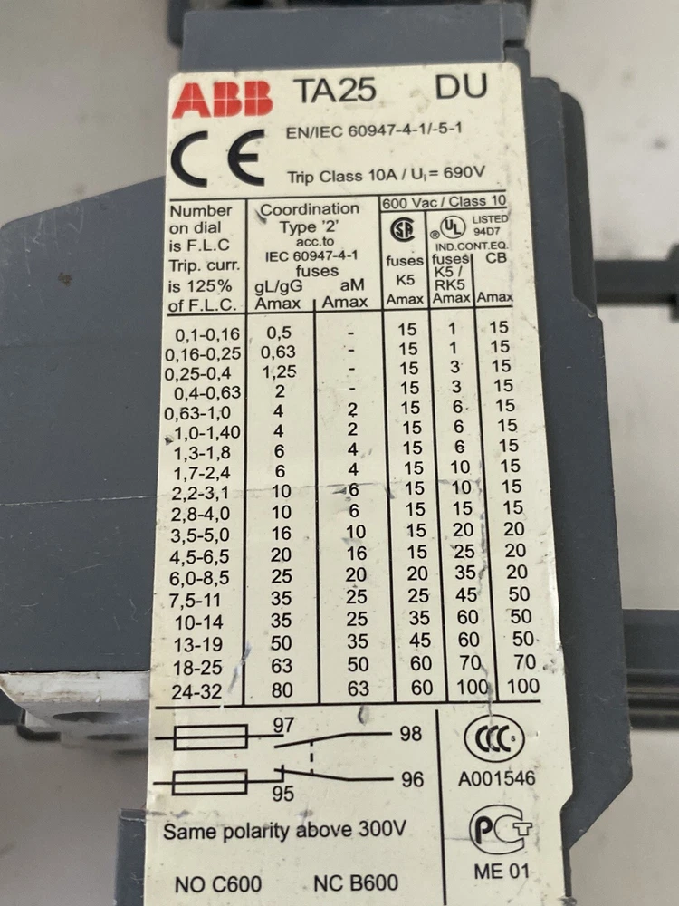 Lot Of 4 ABB TA25 DU OVERLOAD RELAY 2.2 - 3.1 AMP