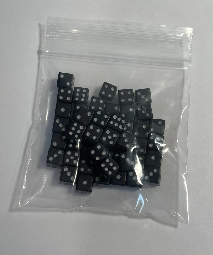 Enhance your gaming experience with this lot of 50 high-quality 7mm, MINI, dice in classic black. Perfect for all board games, these mini six-sided dice are a must-have for any game enthusiast. Made in China and suitable for ages 8 and up, these dice are sure to add an extra level of excitement to your gameplay. With a variety of age levels, these dice are perfect for anyone who loves to play games. Whether you're a seasoned player or just starting out, these dice are sure to provide hours of fun.