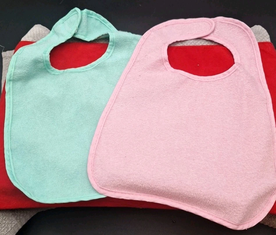This bundle includes 8 baby-toddler bibs for boys and girls, featuring fun sayings themed for mealtime. Made of cotton with a holiday theme, these drool bibs have convenient velcro closure and snap closure for easy use. Personalization is not available, but the bibs are designed with a festive spirit for celebrations.