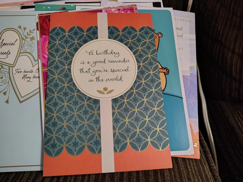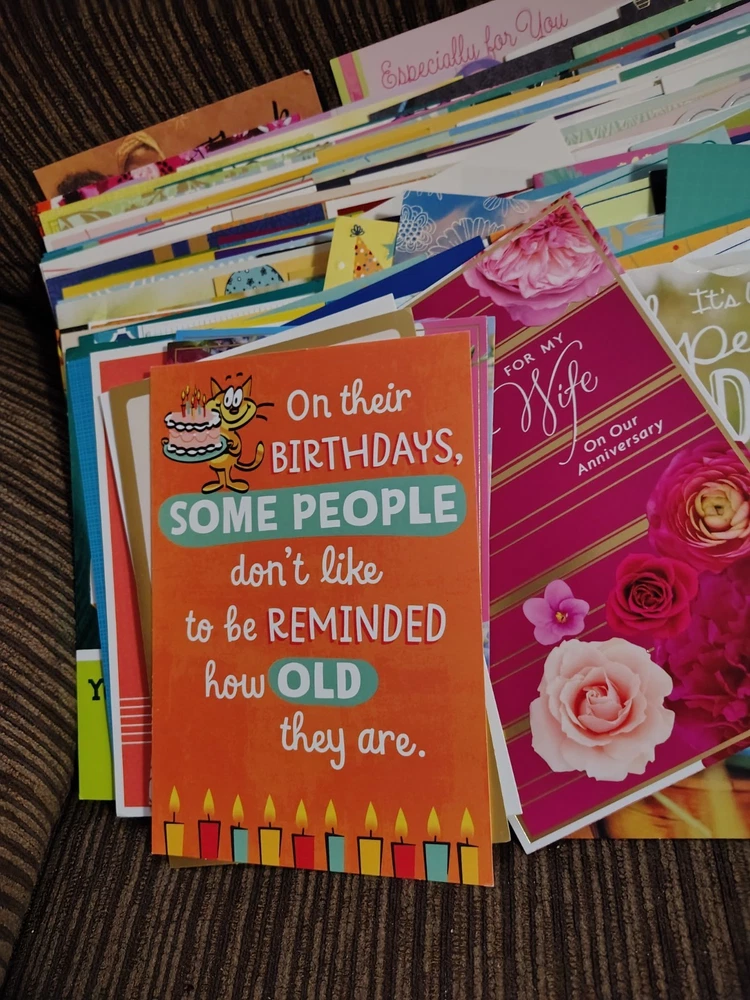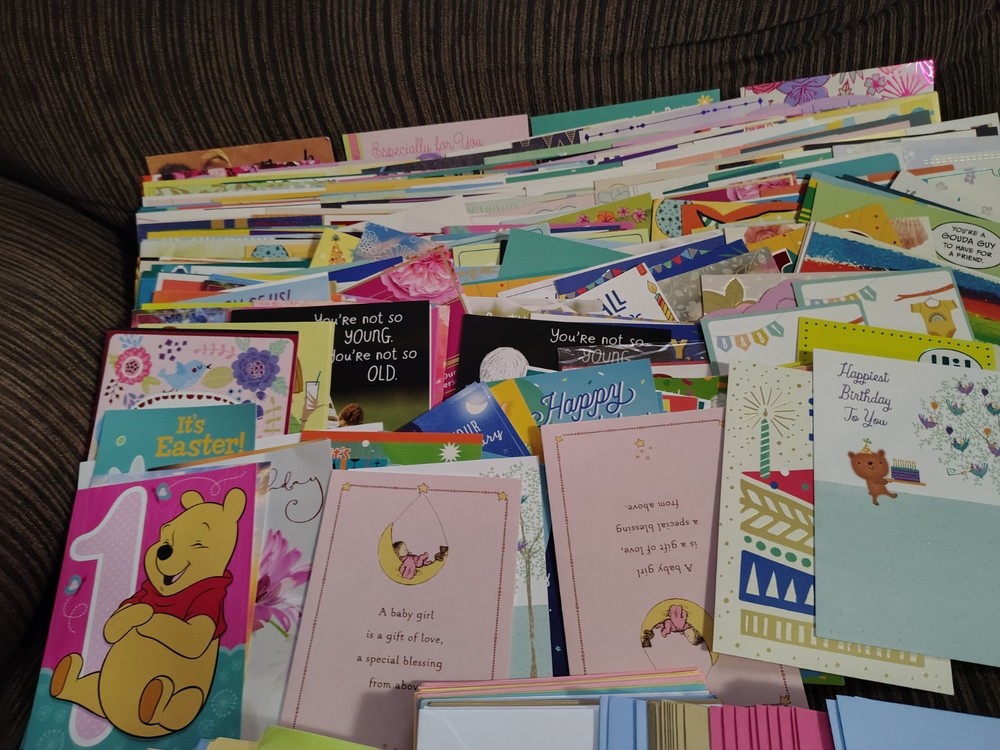 This lot of over 200 mixed greeting cards with matching envelopes features a variety of funny animal-themed cards perfect for all occasions. The colorful, artist-designed cards are made of cardstock and come with embellishments, making them a delightful addition to any greeting. Each card is folded and includes an envelope for easy mailing, making them a versatile choice for women looking to send thoughtful messages with a touch of cupcakes and angels.