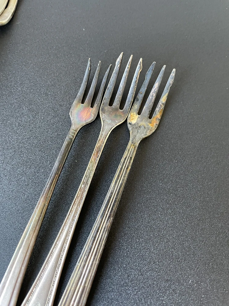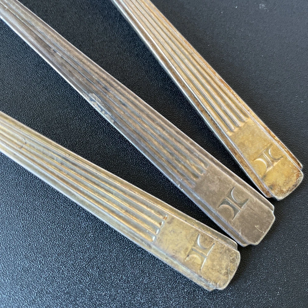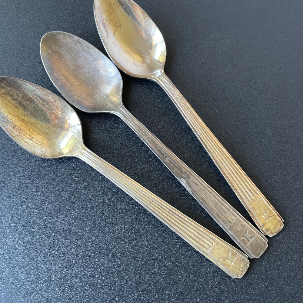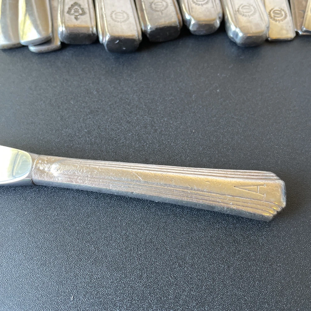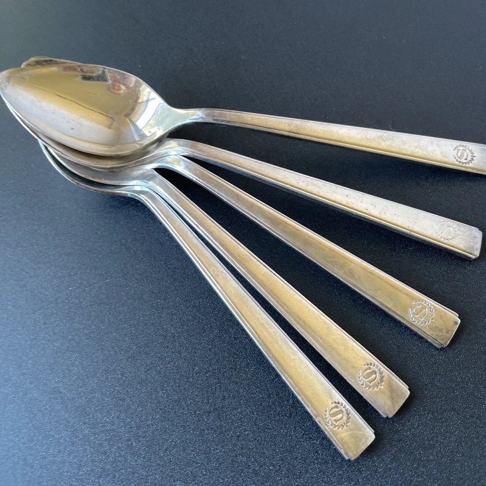 Lot of vintage hotel and restaurant flatware. Set includes: -Two spoons and three knives from Holiday Inn; most are smaller size -Five Sheraton teaspoons, marked Oneida -One Sheraton dinner fork, marked Oneida -Four Sheraton dinner knives in two different styles -Three Hilton teaspoons, one a slightly different style -One Statler Hilton knife, smaller size -One knife from the Ambassador Hotel in Los Angeles, smaller size -One Denny's teaspoon -One silver plate Hilton cocktail fork -One cocktail fork from Mike Lyman Grills -One cocktail fork with "DI" on the handle; I cannot identify where this is from -One dinner fork from YWCA -One dinner fork from The Manhattan -One demitasse spoon from Jurys Inns -One demitasse spoon marked Universitets Sentret Oslo and Norway on the back -One demitasse spoon from The Beverly Hilton All have wear, including dulling, some scratching, and tarnish. Some forks have bent tines. I have not polished any of the silverware. Some of the hollow knife handles have a lot of dings and dents. Please see all photos.