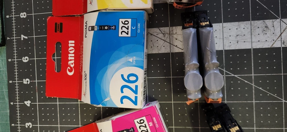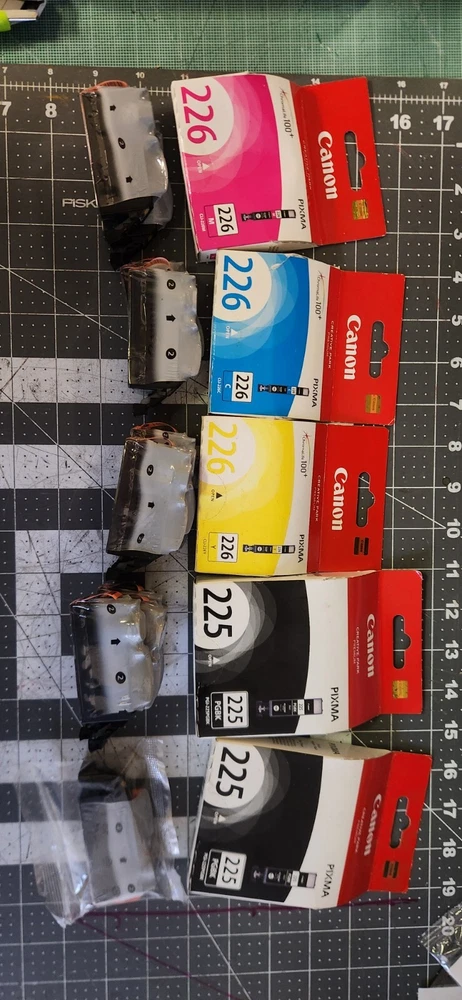 The product is a lot of 17 genuine Canon OEM Pixma ink cartridges compatible with Canon printers. These cartridges are original and made by Canon. 3 x 225 black 4 x 226 black 3 x 226 magenta 3 x 226 cyan 4 x 226 yellow