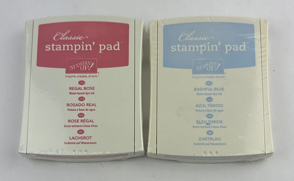 Lot of 2 Stampin' Up Ink Pads Regal Rose Bashful Blue New, sealed packages.