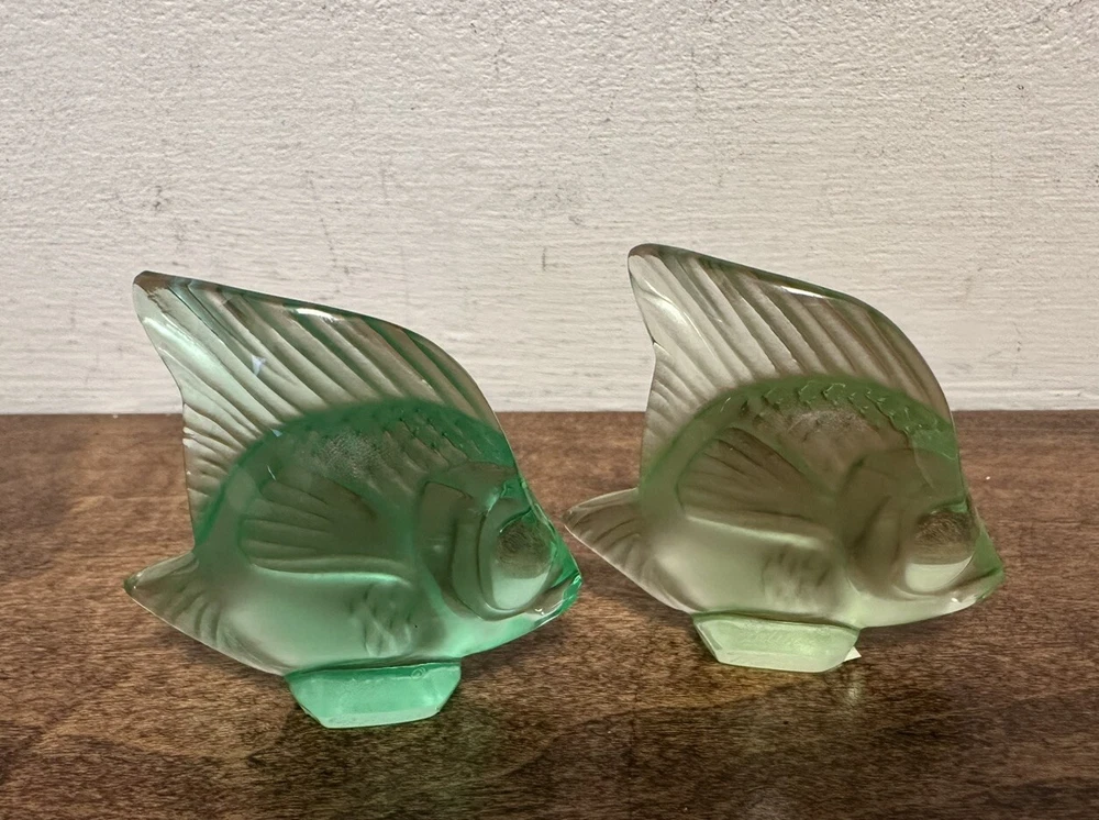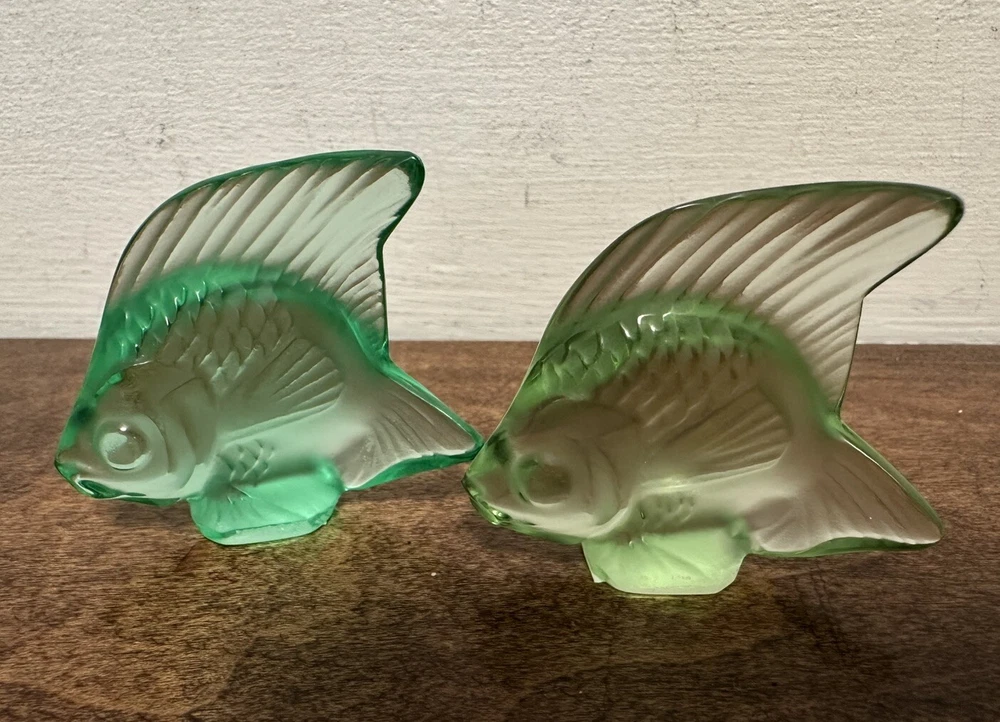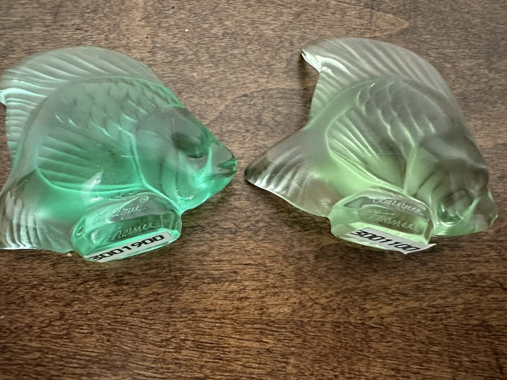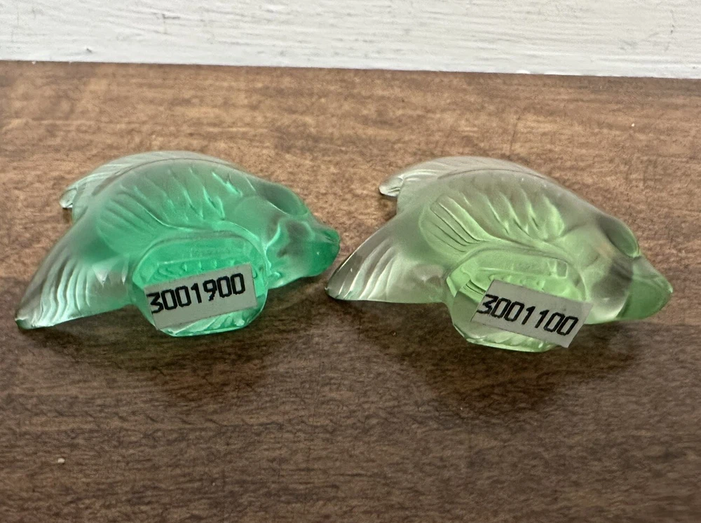 Lot of 2 LALIQUE Crystal Green Fish Figurines , Signed just beautiful no chips or cracks! everything in the photo is included Ready to Ship!