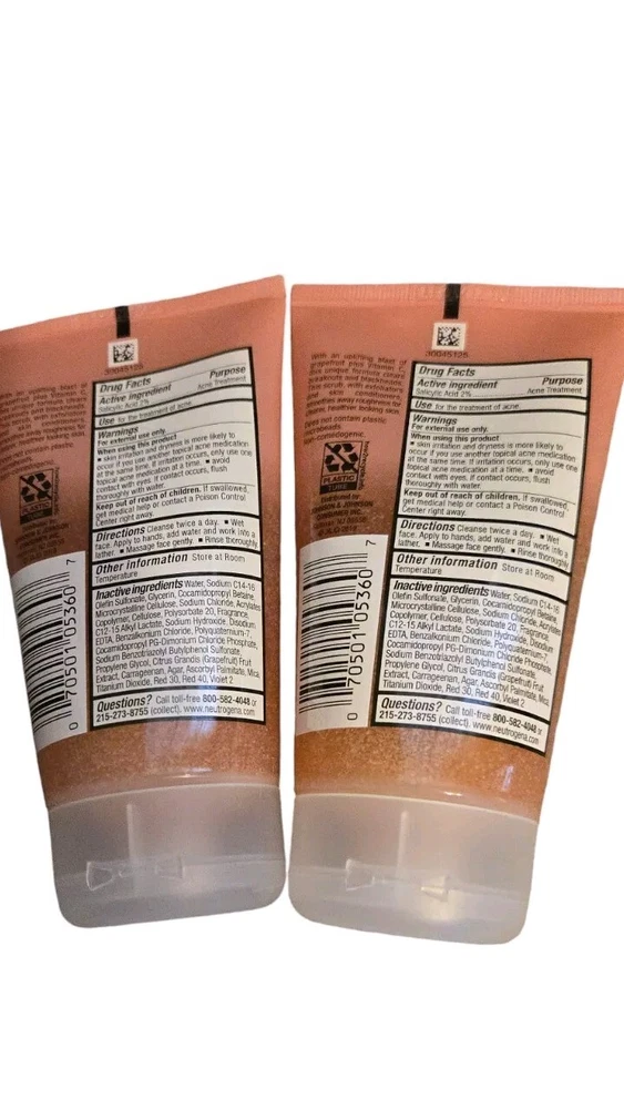 Lot of 2: Neutrogena Oil Free Acne Wash Facial Scrub Pink Grapefruit 4.2 oz Each.
