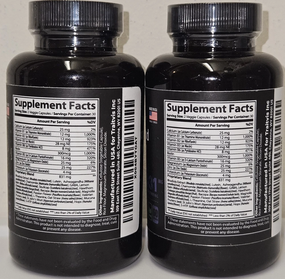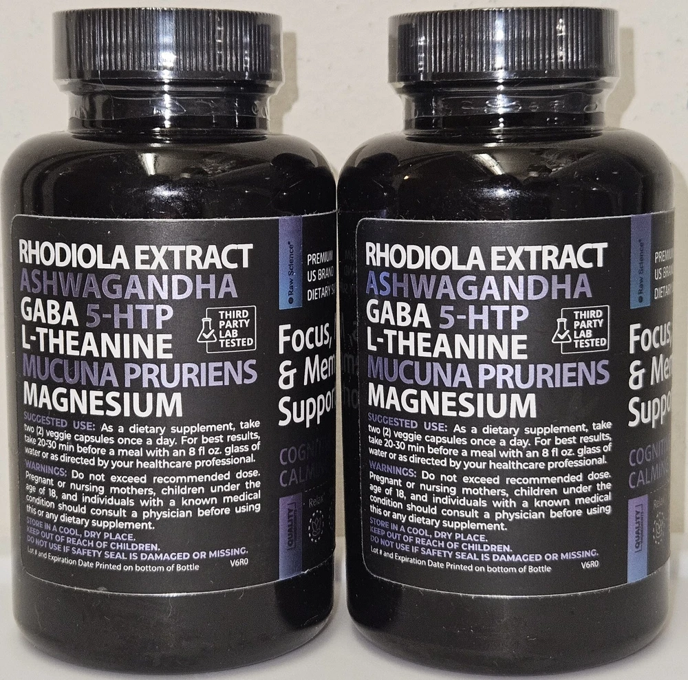 Lot of 2 bottles of: S Raw Science Focus, Mood & Memory Support Cognitive calming blend Relax Sleep Calm Dietary supplement 60 Capsules - EACH Exp. Date: 05/2025 NEW & sealed