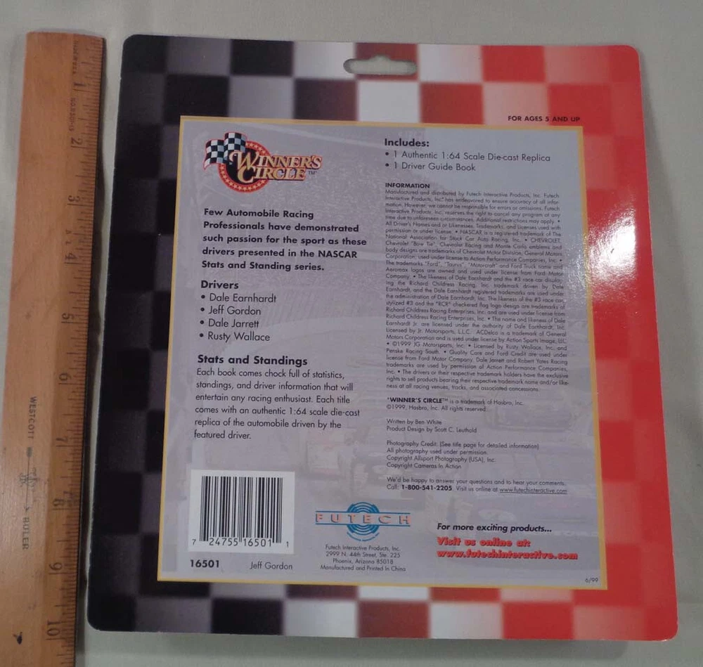 Lot of 2 Winners Circle #24 Jeff Gordon Stats and Standing w/ Guide & 1:64 Car A lot of 2 Winners Circle #24 Jeff Gordon "Stats and Standing" sets w/ guide book & 1:64 Car. You get 2 of the items shown (only one is shown in pictures). Pictures show typical item being offered. Calculated shipping (w/ tracking - 1 business days handling). 30 day return privilege on all items. *Image may change or be removed after listing ends.