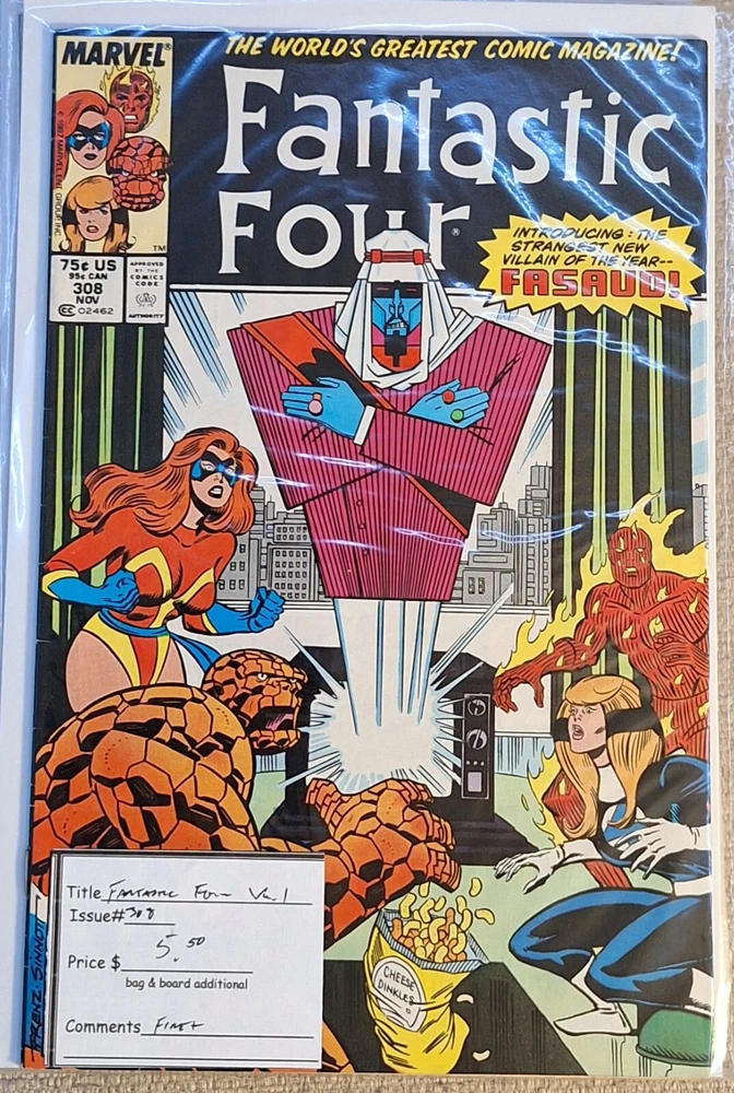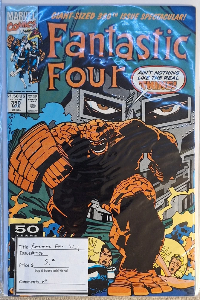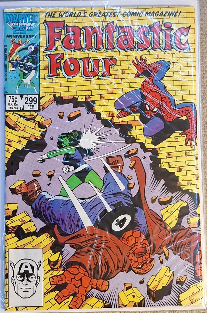 This lot of 20 Marvel Comics Fantastic Four between #295 - #387. Includes the Marvel 25th Anniversary issue, and is a must-have for any comic book collector. The collection includes issues featuring the beloved characters of the Fantastic Four superhero team, including Human Torch (Johnny Storm), The Thing, Invisible Girl (Sue Richards), She Hulk, and Mister Fantastic. The comics are in softcover format and belong to the US Comics tradition. The series title is Fantastic Four, and the genre is superheroes. The publisher is Marvel Comics, which is known for its high-quality comic books. This lot falls under the categories of Comics & Graphic Novels, Comics, Comic Books & Memorabilia, and Collectibles. Add this amazing collection to your library today! Books are all fine+. Minor spine ticks, minor corner bumps, very small creases, minor warping. (Note that wrinkling seen in pictures is from the bags and not the books.) I'm trying to be conservative with grading. Please see pictures for details on each issue. I am not a professional grader. Please message with any questions. Includes issue #'s: 295-301, 308, 337-342, 350, 352, 357, 369, 386, 387(2 copies). 20 different issues total. (21 books with 1 double.) Please message with any questions. Please search my other listings under "comics" for more great books! I ship fast & securely. Please see my feedback!