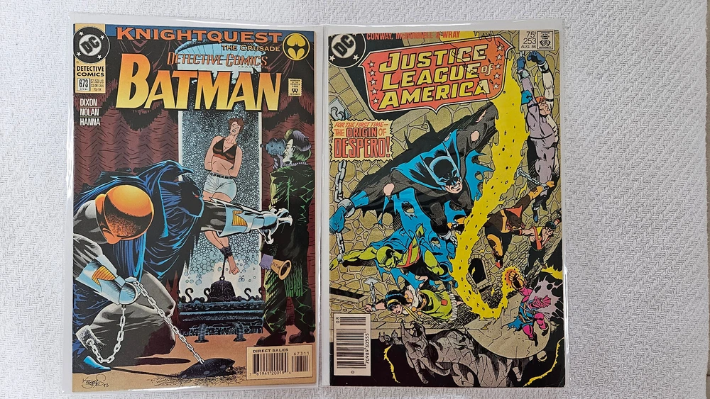 BATMAN COMICS – Total = 28 Comics - $125.50 Overstreet Note: All comics come in new plastic sleeves with backboards. Batman – Total = 1 1) Batman (DC) - #0 - VF 8.0 to NM- 9.2 - $5 Overstreet Batman Adventures, The – Total = 1 1) Batman Adventures, The (DC) - #25 - VF 8.0 to NM- 9.2 - $16 Overstreet Batman and the Outsiders – Total = 1 1) Batman and the Outsiders (DC) - #9 - GD 2.0 - $1 Overstreet Batman: Legends of the Dark Knight – Total = 17 Comics - $66 Overstreet 1) Batman: Legends of the Dark Knight (DC) #2 - VF 8.0 to NM- 9.2 - $4 Overstreet 2) Batman: Legends of the Dark Knight (DC) #3 - VF 8.0 to NM- 9.2 - $4 Overstreet 3) Batman: Legends of the Dark Knight (DC) #4 - VF 8.0 to NM- 9.2 - $4 Overstreet 4) Batman: Legends of the Dark Knight (DC) #5 - VF 8.0 to NM- 9.2 - $4 Overstreet 5) Batman: Legends of the Dark Knight (DC) #6 - VF 8.0 to NM- 9.2 - $4 Overstreet 6) Batman: Legends of the Dark Knight (DC) #7 - VF 8.0 to NM- 9.2 - $4 Overstreet 7) Batman: Legends of the Dark Knight (DC) #8 - VF 8.0 to NM- 9.2 - $4 Overstreet 8) Batman: Legends of the Dark Knight (DC) #9 - VF 8.0 to NM- 9.2 - $4 Overstreet 9) Batman: Legends of the Dark Knight (DC) #10 - VF 8.0 to NM- 9.2 - $4 Overstreet 10) Batman: Legends of the Dark Knight (DC) - #11 - VF 8.0 to NM- 9.2- $4 Overstreet 11) Batman: Legends of the Dark Knight (DC) - #12 - VF 8.0 to NM- 9.2 - $4 Overstreet 12) Batman: Legends of the Dark Knight (DC) - #14 - VF 8.0 to NM- 9.2 - $4 Overstreet 13) Batman: Legends of the Dark Knight (DC) - #15 - VF 8.0 to NM- 9.2 - $4 Overstreet 14) Batman: Legends of the Dark Knight (DC) - #19 - VF 8.0 to NM- 9.2 - $5 Overstreet 15) Batman: Legends of the Dark Knight (DC) - #21 - VF 8.0 to NM- 9.2 - $3 Overstreet 16) Batman: Legends of the Dark Knight (DC) - #24 - VF 8.0 to NM- 9.2 - $3 Overstreet 17) Batman: Legends of the Dark Knight (DC) - #26 - VF 8.0 to NM- 9.2 - $3 Overstreet Brave and the Bold, The – Total = 2 Comics - $4 Overstreet 1) Brave and the Bold, The (DC) - #177 - FN 6.0 - $3 Overstreet 2) Brave and the Bold, The (DC) - #188 - GD 2.0 - $1 Overstreet Detective Comics – Total = 3 Comics - $22 Overstreet 1) Detective Comics (DC) - #615 - VF 8.0 to NM- 9.2 - $8 Overstreet 2) Detective Comics (DC) - #620 - VF 8.0 NM- 9.2 – $8 Overstreet 3) Detective Comics (DC) - #673 - VF 8.0 to NM- 9.2 - $6 Overstreet Justice League of America – Total = 1 1) Justice League of America (DC) - #253 - VF 8.0 to NM- 9.2 - $6 Overstreet Robin (Limited Series) – Total = 1 1) Robin (Limited Series) (DC) - #1 - GD 2.0 (Poster not included & slight water damage on back cover) - $2 Overstreet Robin – Total = 1 1) Robin (DC) - #11 - VF 8.0 to NM- 9.2 - $3.50 Overstreet Note: I combine shipping on all items ~