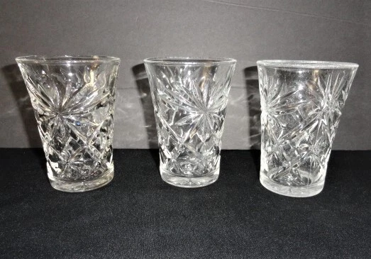 Lot of 3 Anchor Hocking 8oz Glass Tumblers Star of David Vintage Prescut 4.25"H No chips or cracks Q30